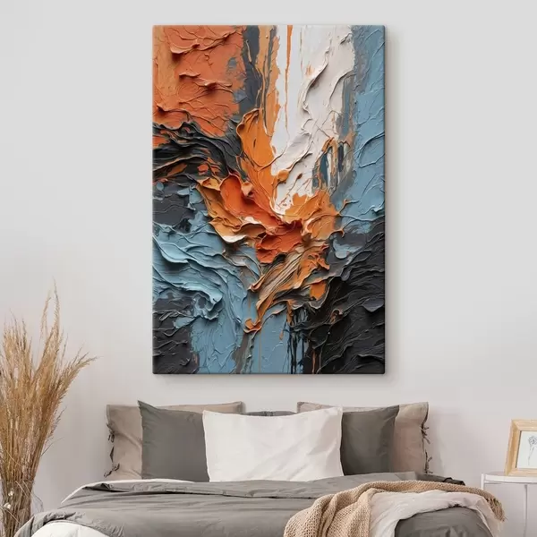 Tableau Des touches abstraites lumineuses dans des tons orange et bleus s48359