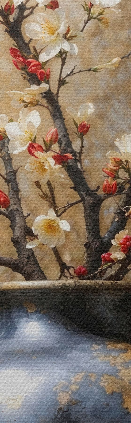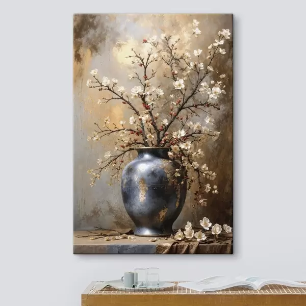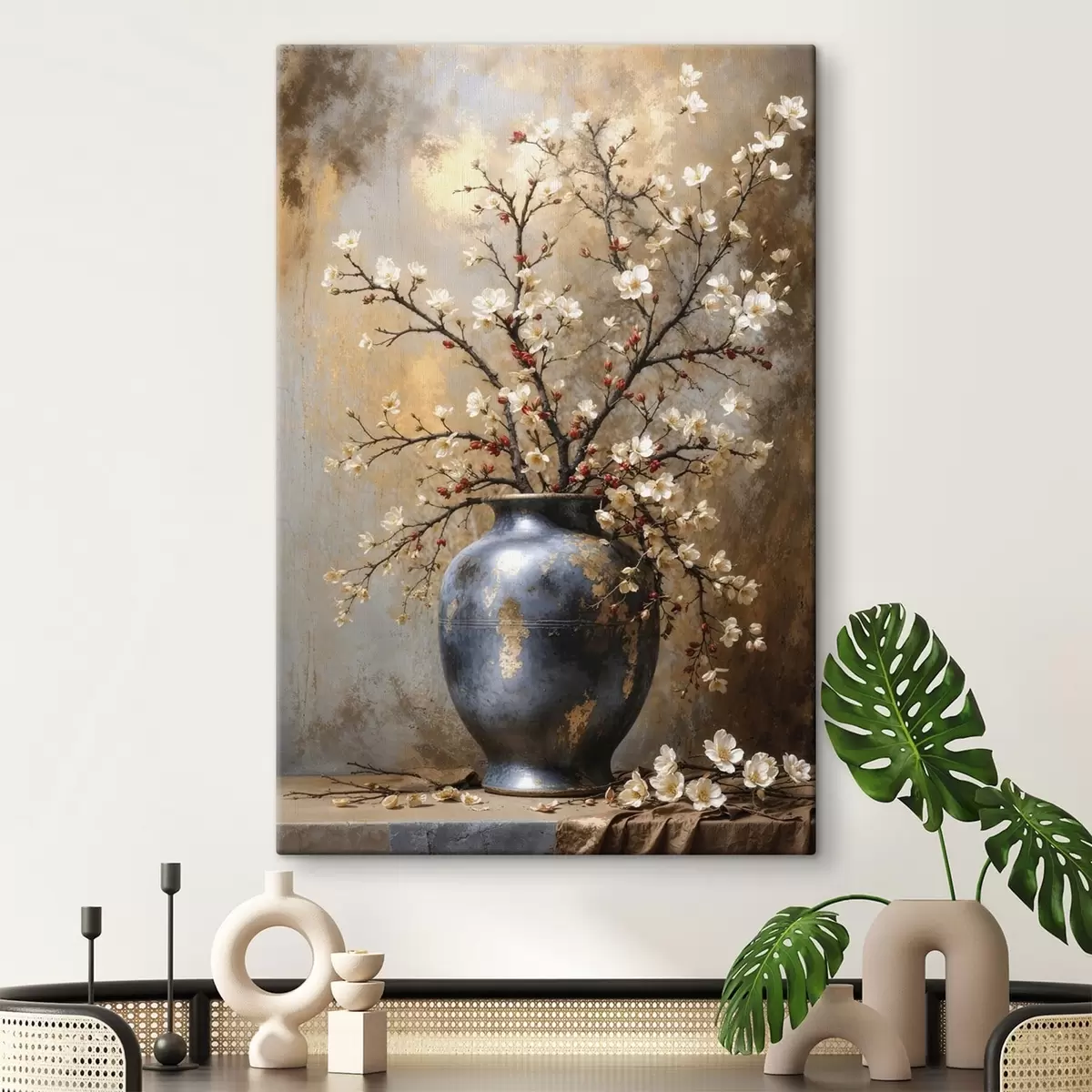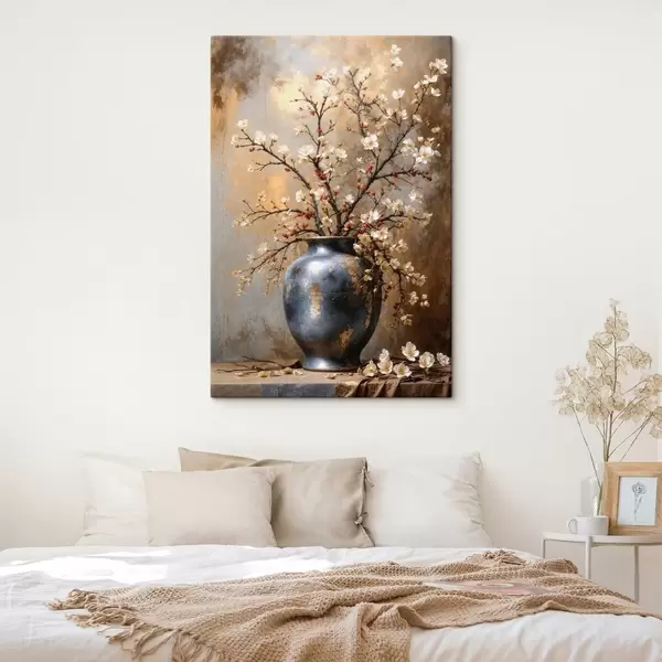 Tableau Branches fleuries dans un vase sur fond neutre Nr s48361