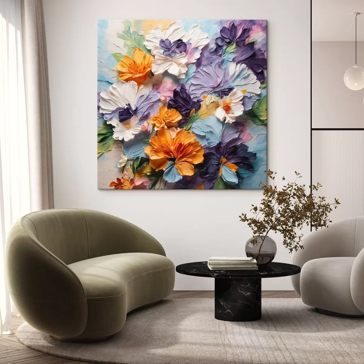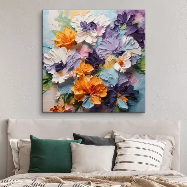 Tableau Des fleurs aux couleurs vives et aux textures variées sur un fond pastel Nr s48363