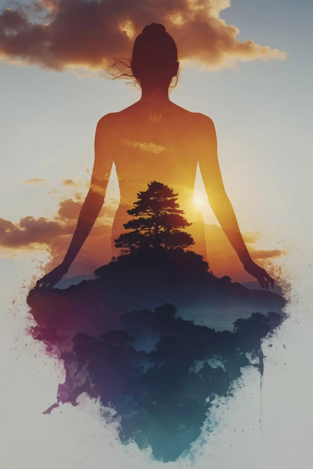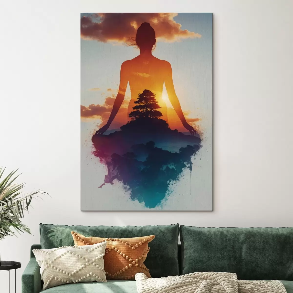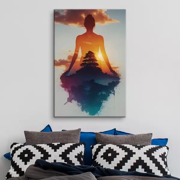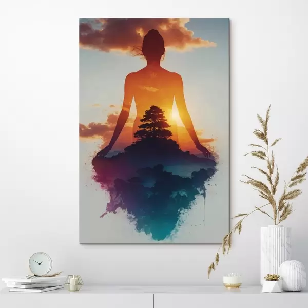 Tableau Silhouette humaine sur fond de paysage au coucher du soleil Nr s48364