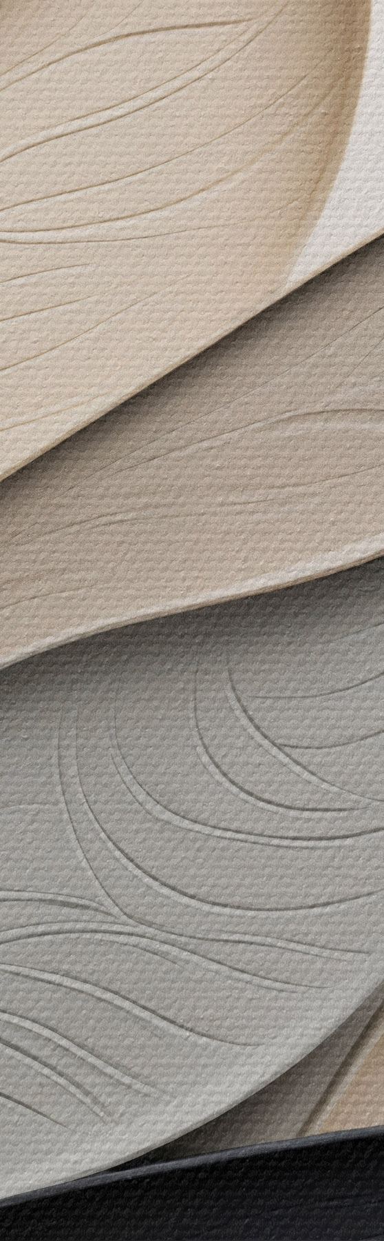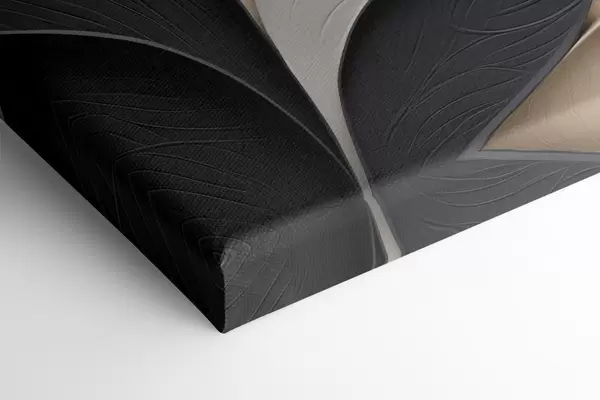 Tableau Composition abstraite de feuilles superposées, de formes courbes en noir, blanc et beige, œuvre d'art texturée Nr s48382