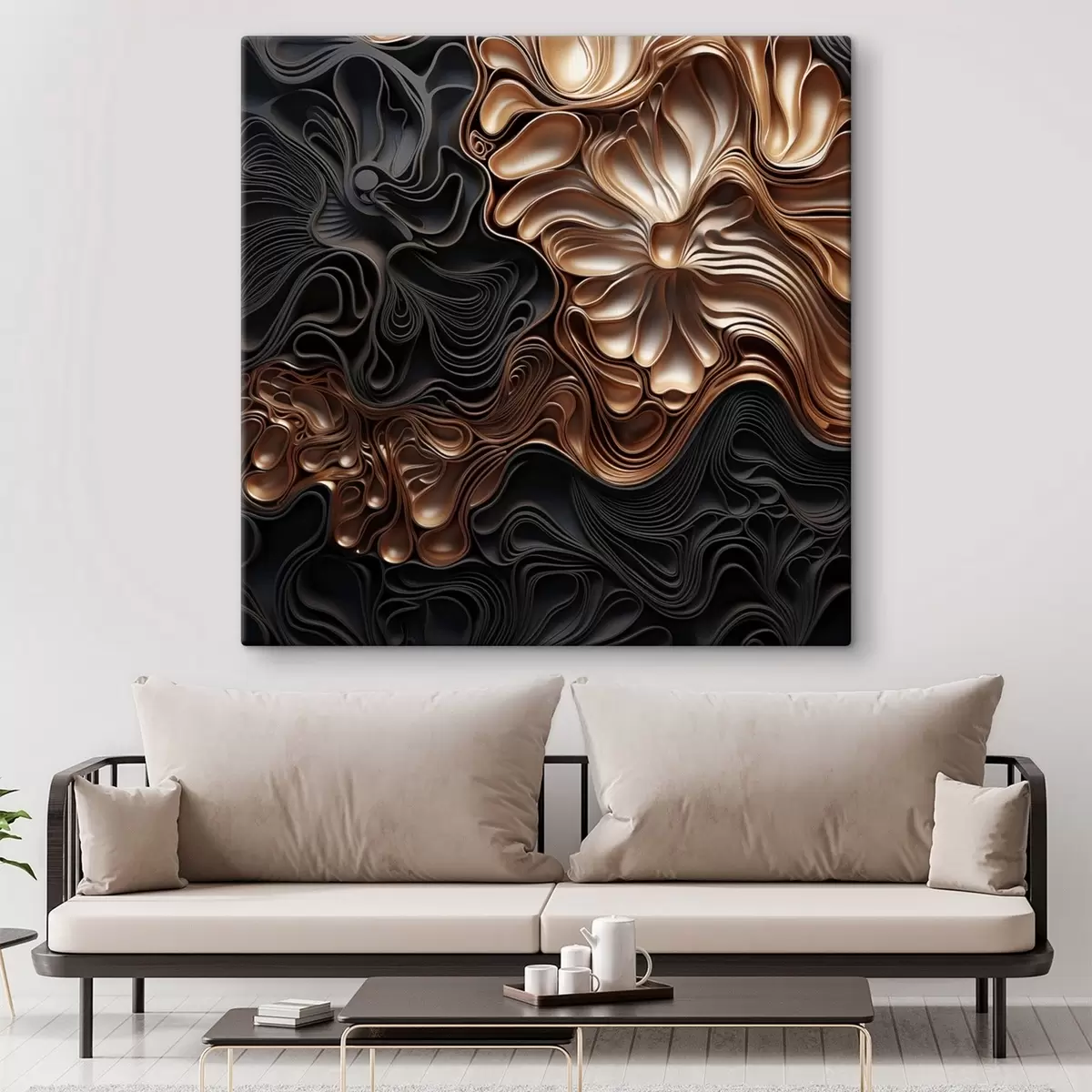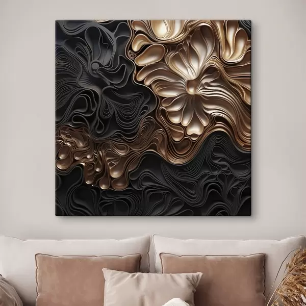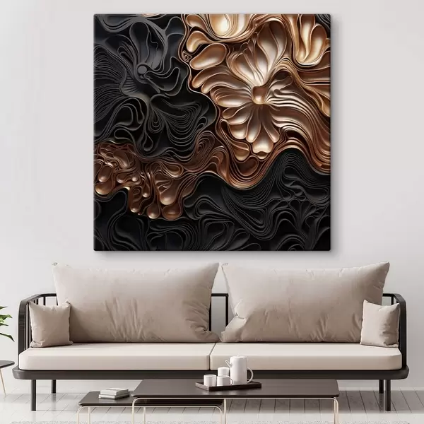 Tableau Des formes sombres, abstraites, fluides et organiques, qui composent une œuvre d'art moderne riche en textures s48383