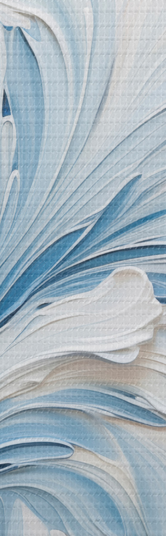 Tableau Un motif floral abstrait blanc et bleu clair, composé de pétales texturés et de lignes sinueuses s48395