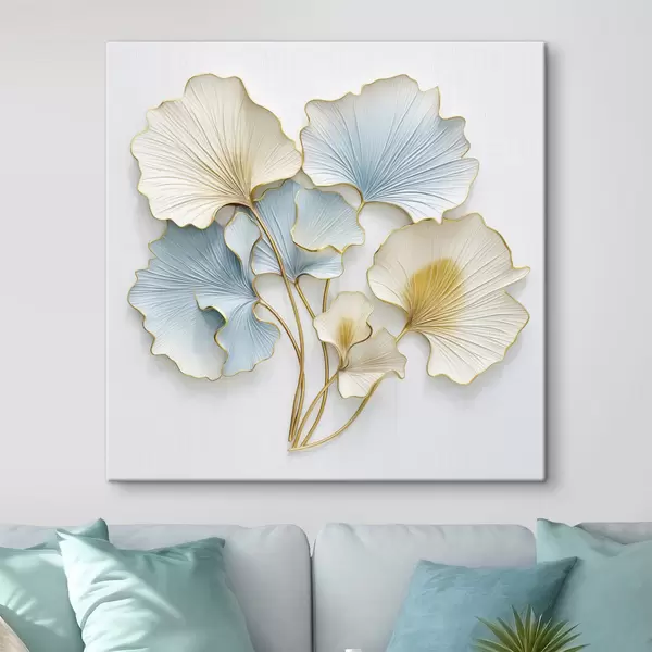 Tableau Feuilles de ginkgo stylisées rehaussées de touches de bleu et de jaune s48398