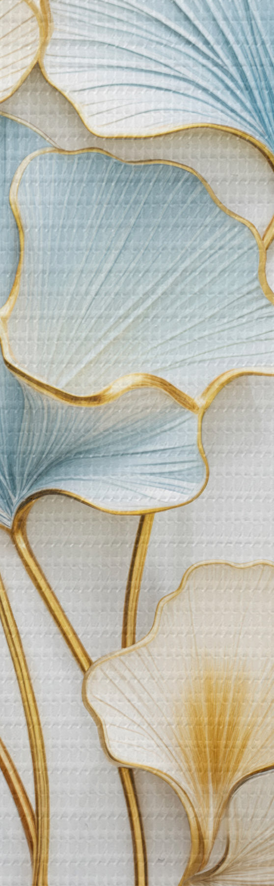 Tableau Feuilles de ginkgo stylisées rehaussées de touches de bleu et de jaune Nr s48398