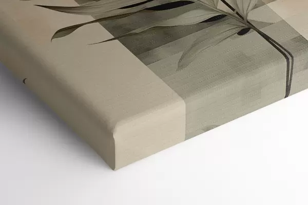 Tableau Une plante vert foncé aux formes géométriques abstraites et aux textures aquarellées dans les tons beiges et verts s48410