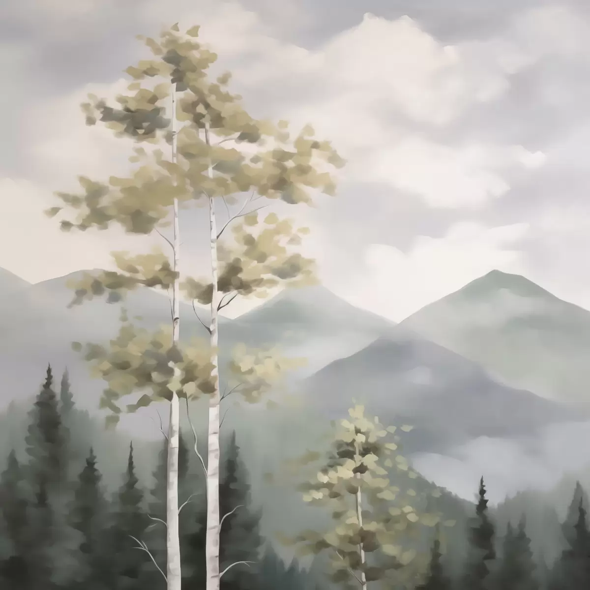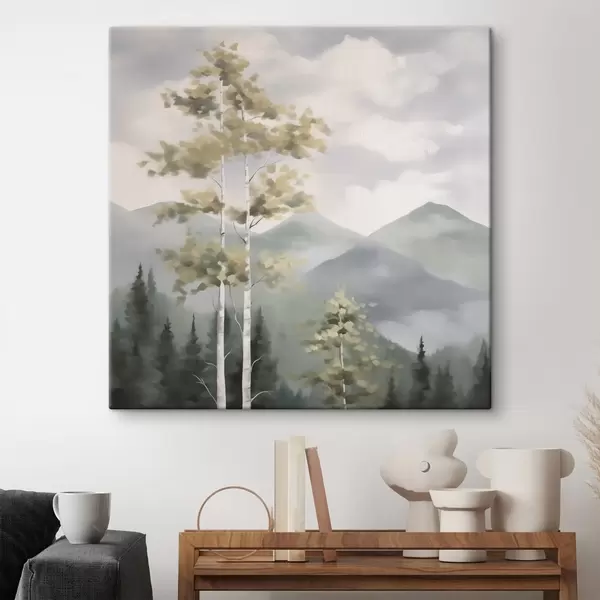 Tableau Des arbres avec les montagnes en arrière-plan, imitation d'une peinture s48421