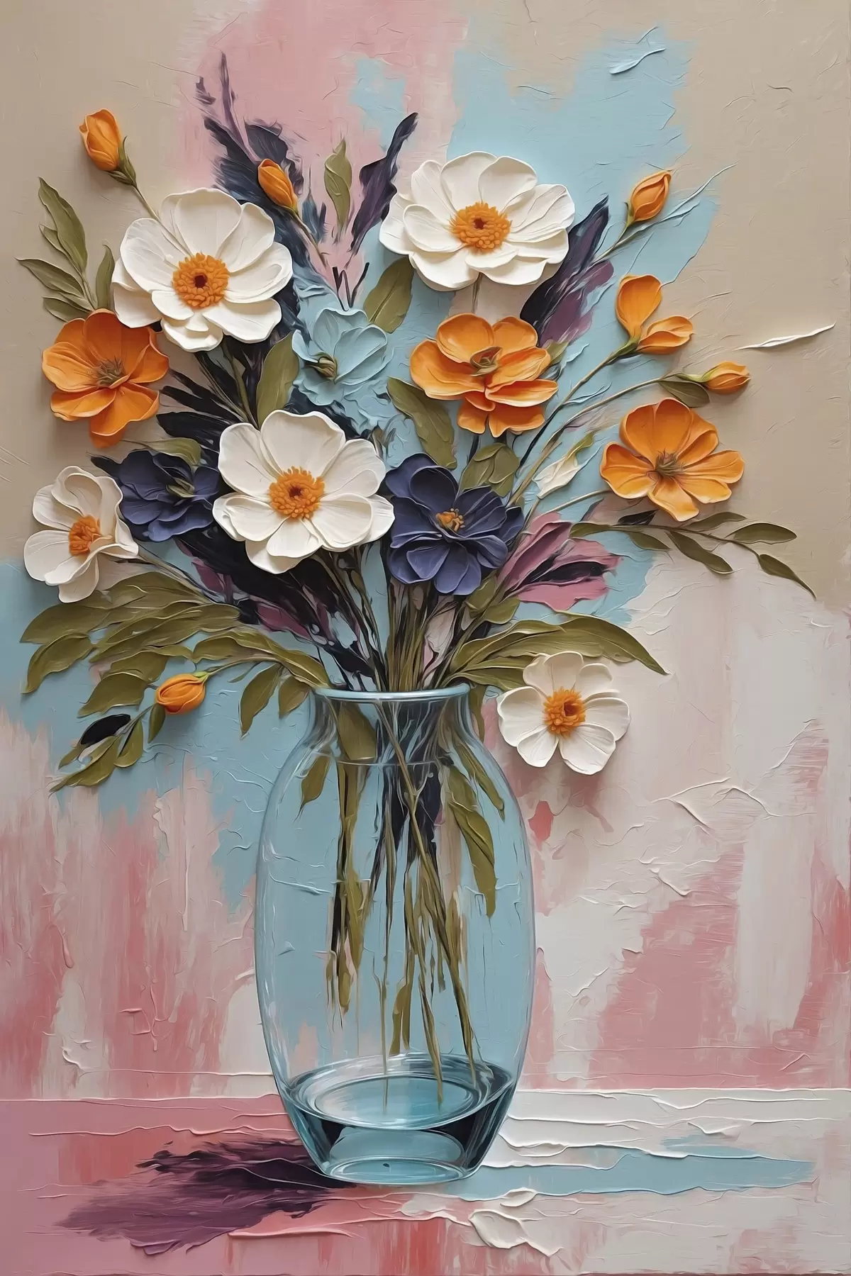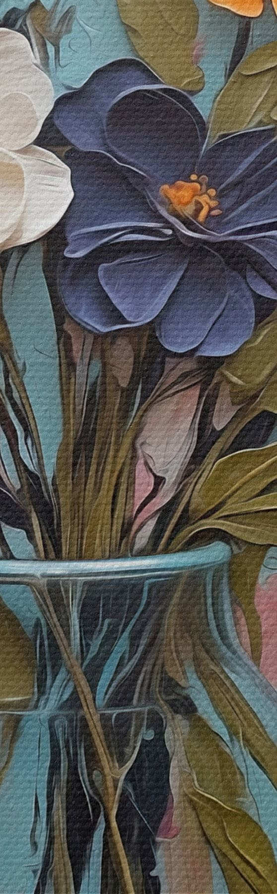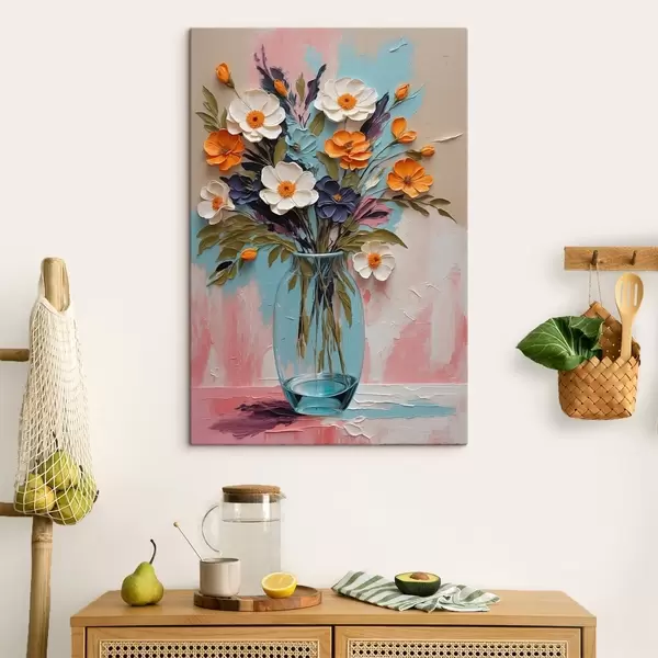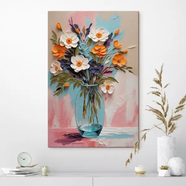 Tableau Bouquet de fleurs dans un vase en verre sur fond coloré Nr s48488