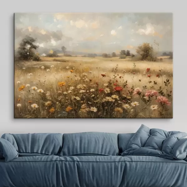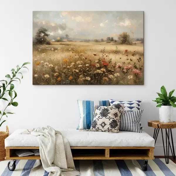 Tableau Champ de fleurs sauvages baigné d'une douce lumière s48491