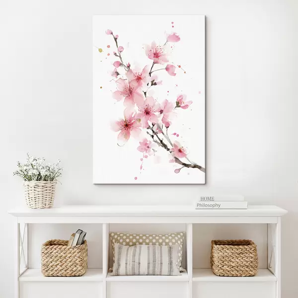Tableau une branche d'abricotier en fleurs, dans un style aquarelle Nr s48521