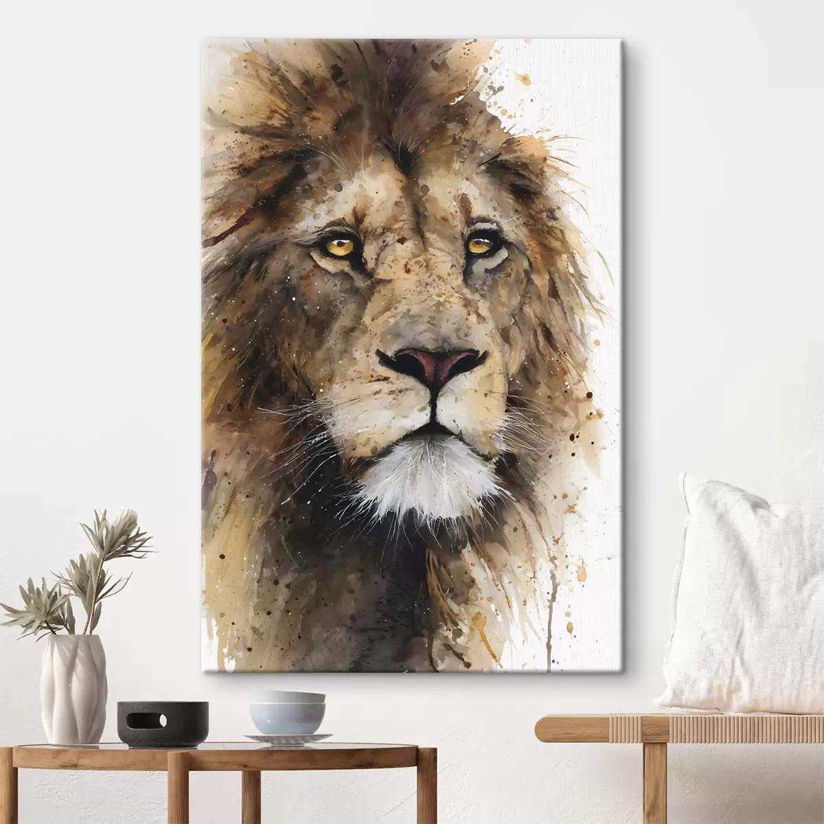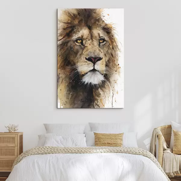 Tableau un lion majestueux peint à l'aquarelle s48525