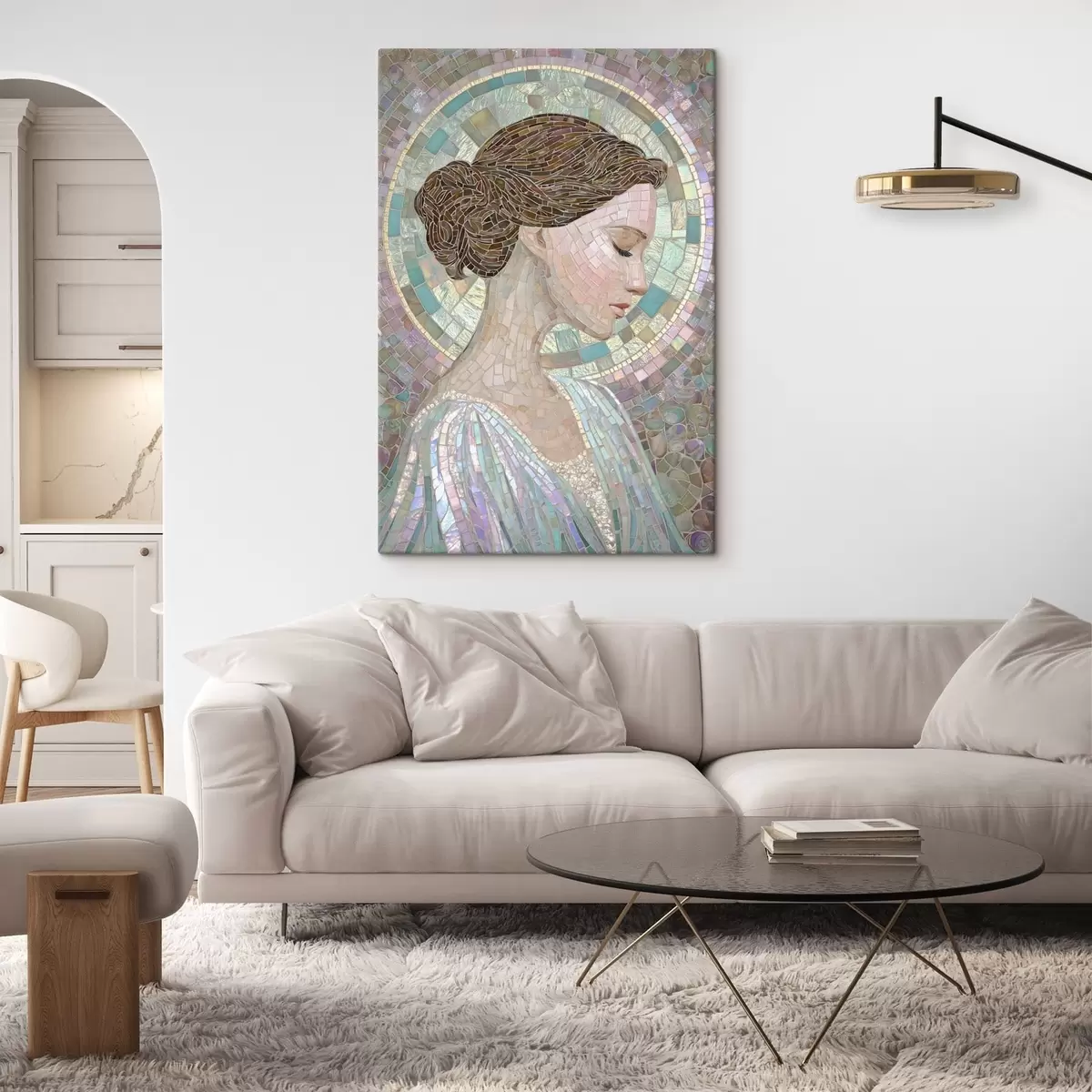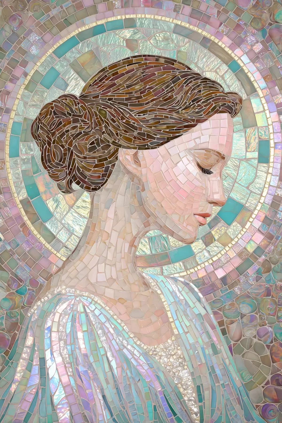 Tableau le profil d'une femme dans un style vitrail s48551