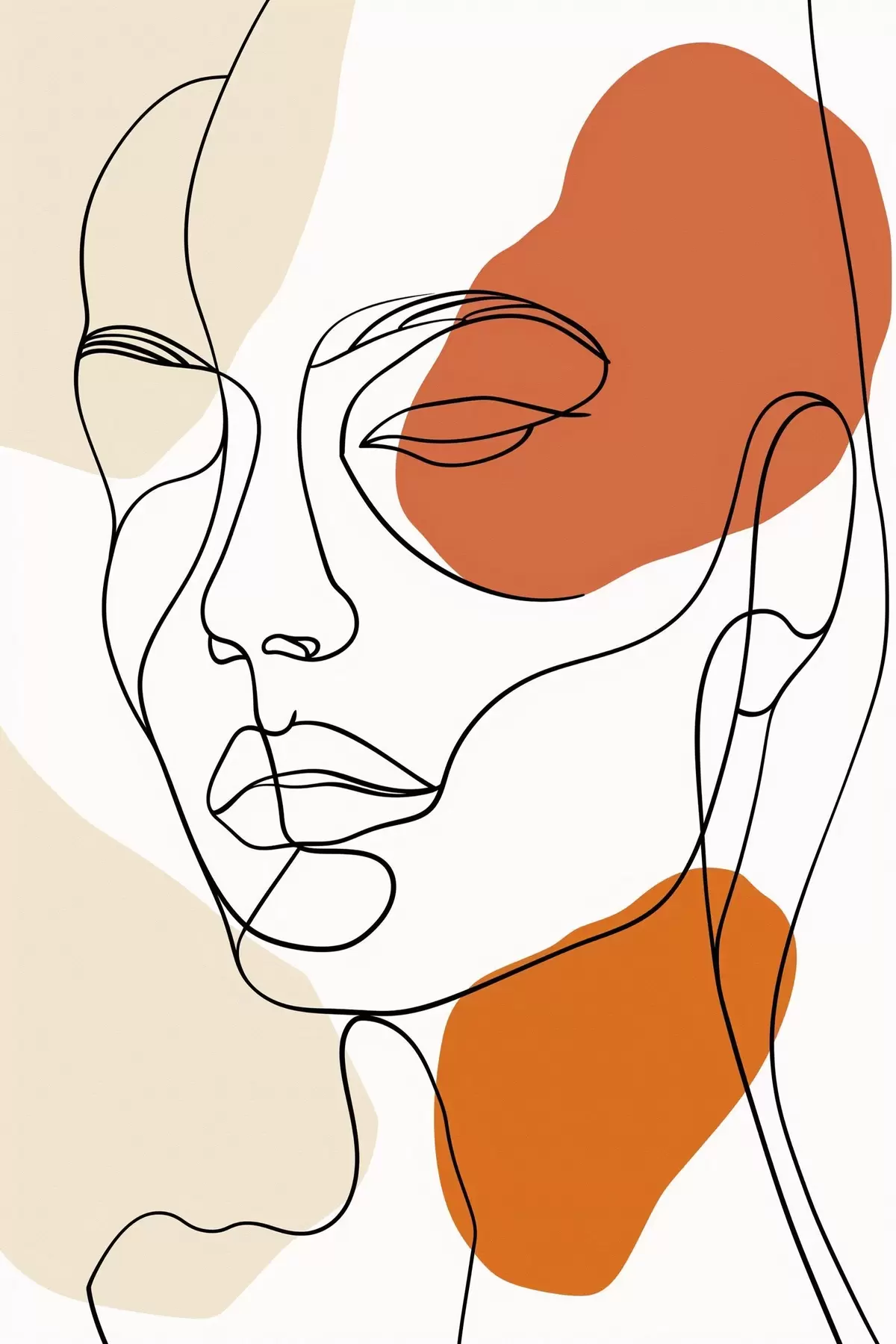 Tableau Visages abstraits, dessin linéaire Nr s48569