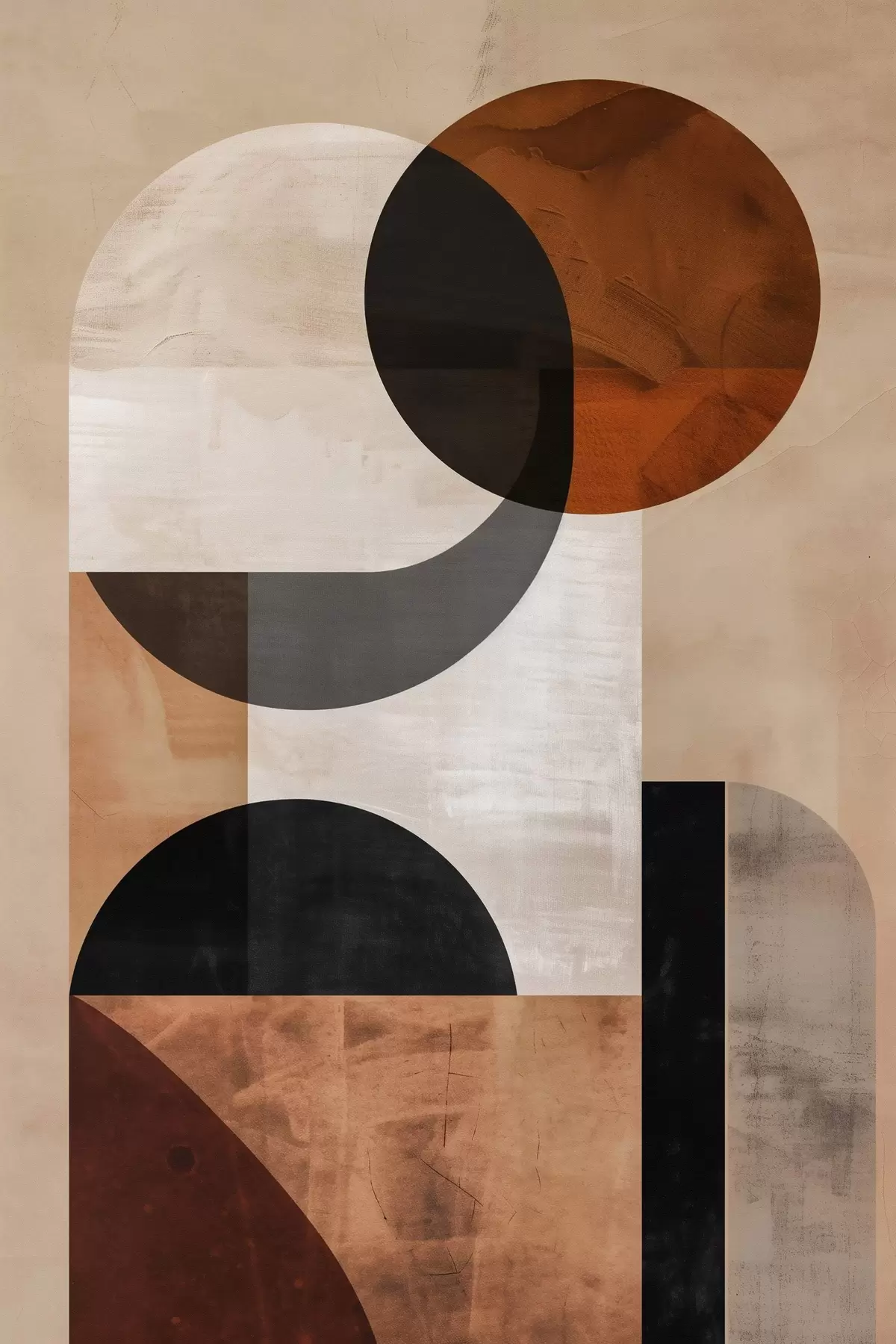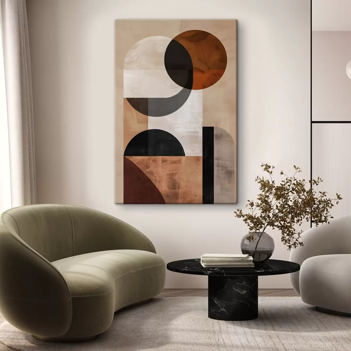 Tableau Abstraction géométrique, beige et noir s48583
