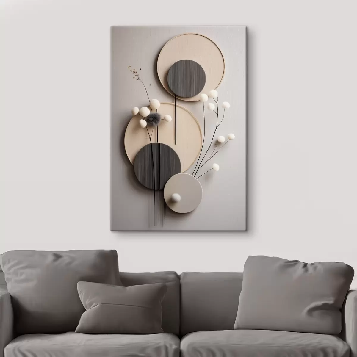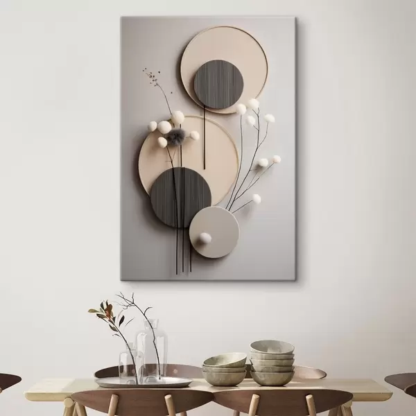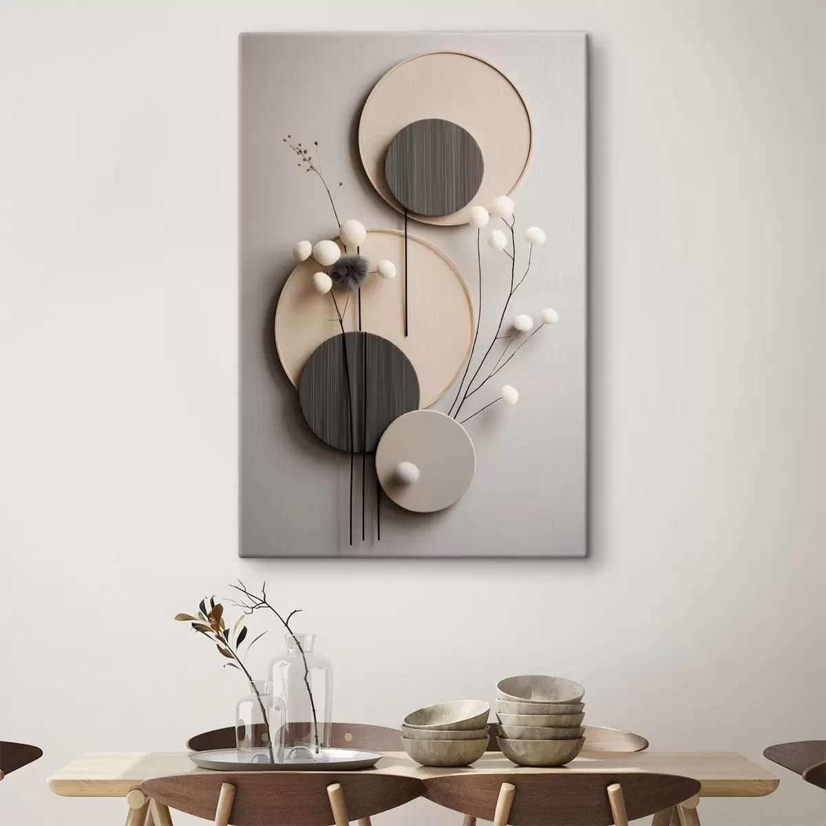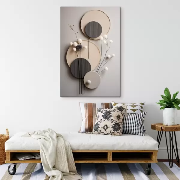 Tableau Panneaux ronds ornés de brindilles sèches et de boules moelleuses Nr s48601