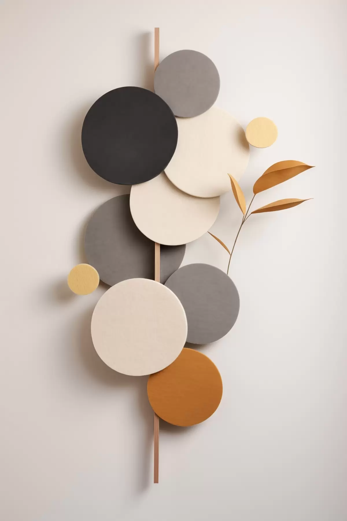 Tableau Cercles abstraits avec des feuilles dans des tons neutres s48602