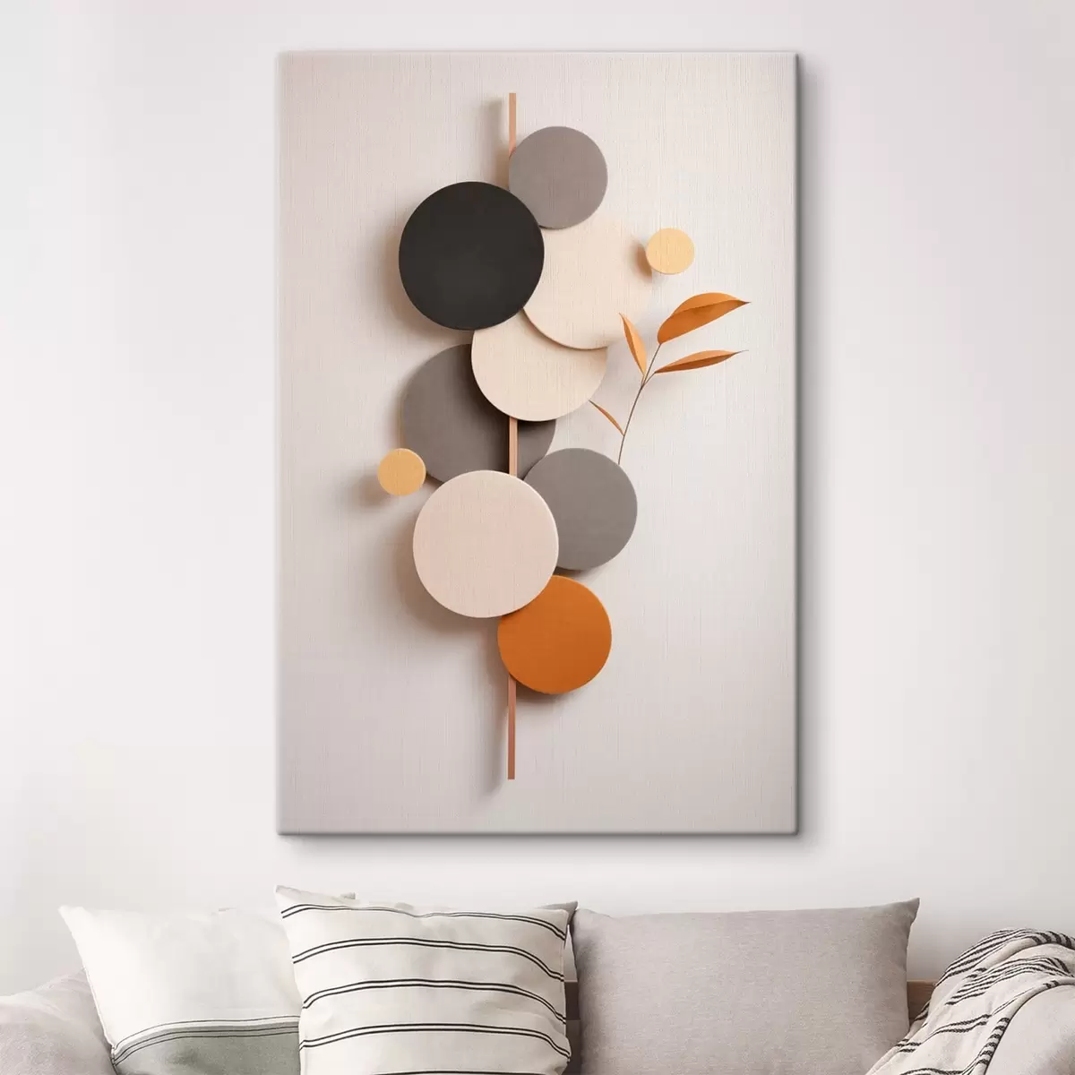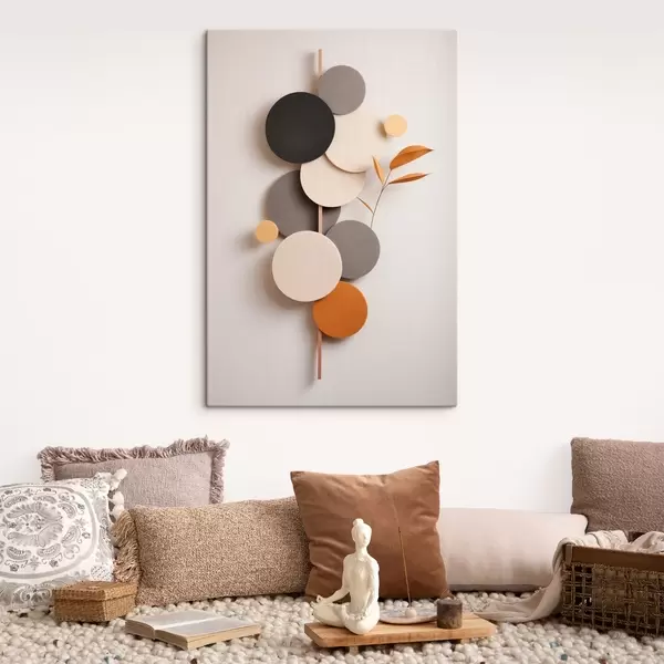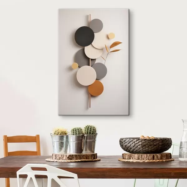 Tableau Cercles abstraits avec des feuilles dans des tons neutres Nr s48602