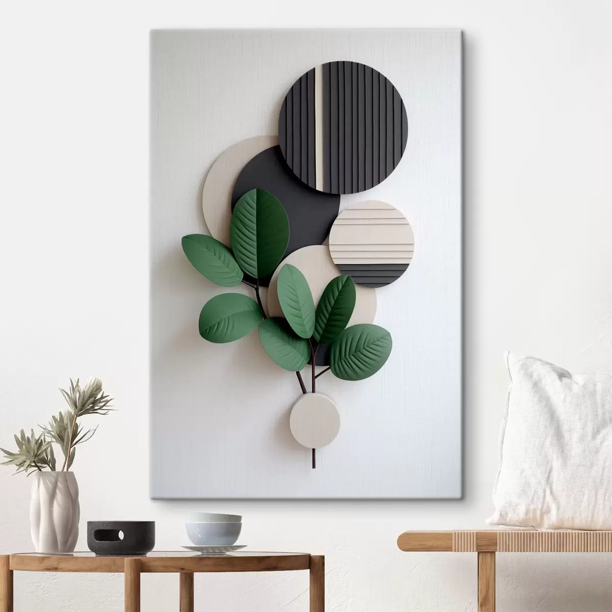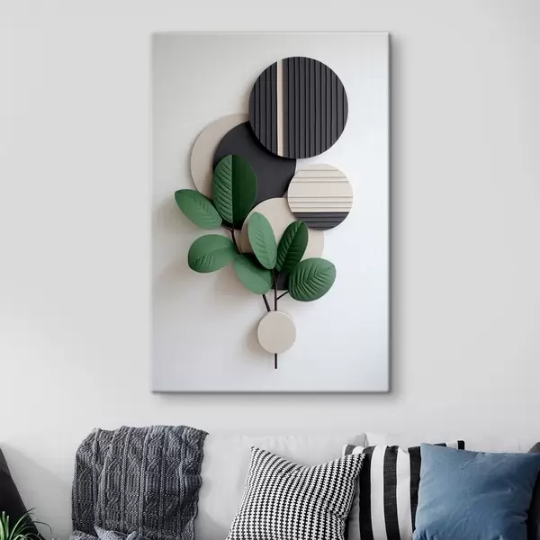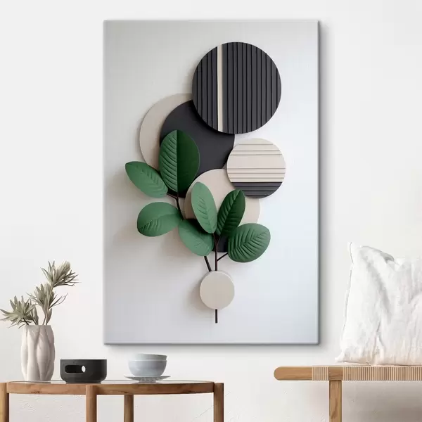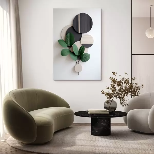 Tableau Feuilles vertes avec des éléments ronds en relief Nr s48603
