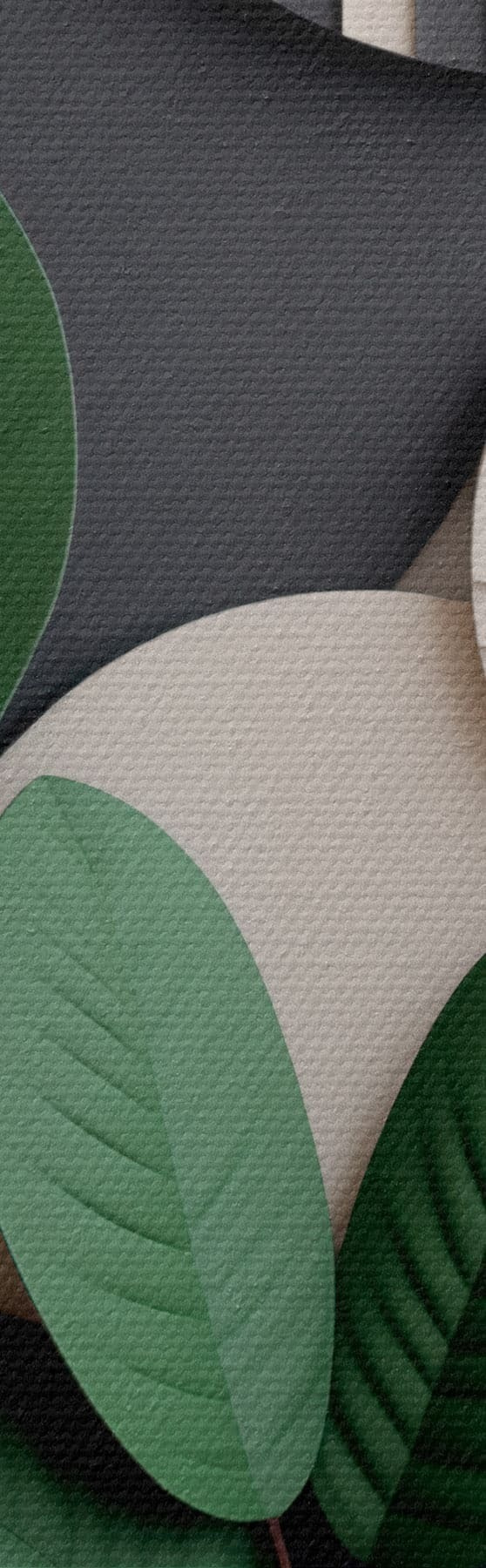 Tableau Feuilles vertes avec des éléments ronds en relief s48603