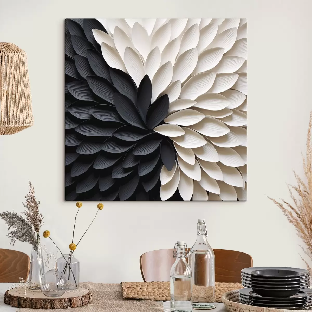 Tableau Pétales clairs et foncés contrastant les uns avec les autres, formant une fleur s48604