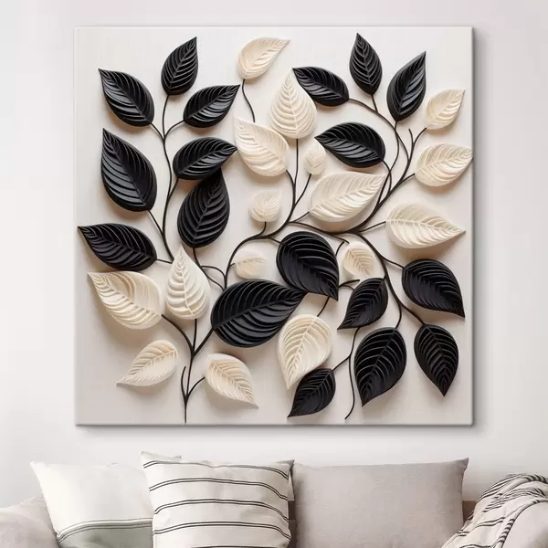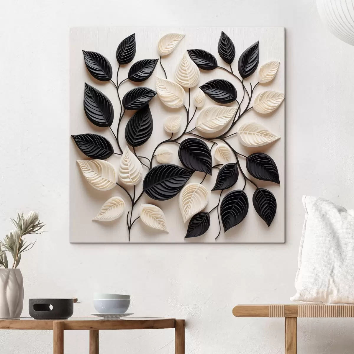 Tableau Composition de feuilles noires et claires sur les branches Nr s48606