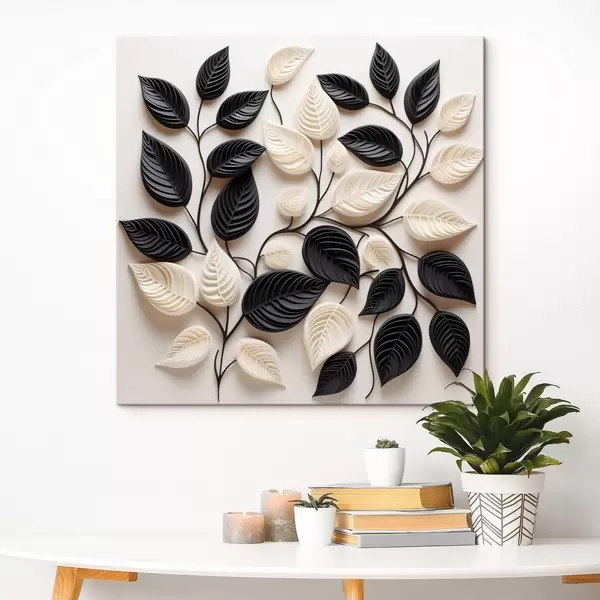 Tableau Composition de feuilles noires et claires sur les branches s48606
