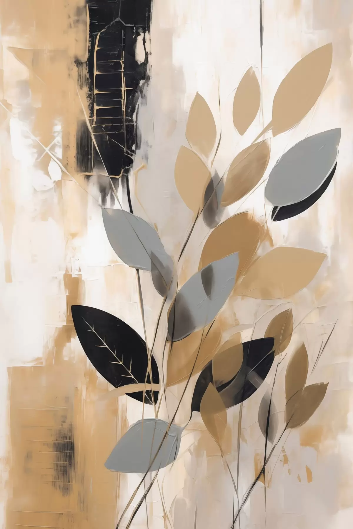 Tableau Une abstraction avec une branche de feuilles s48609