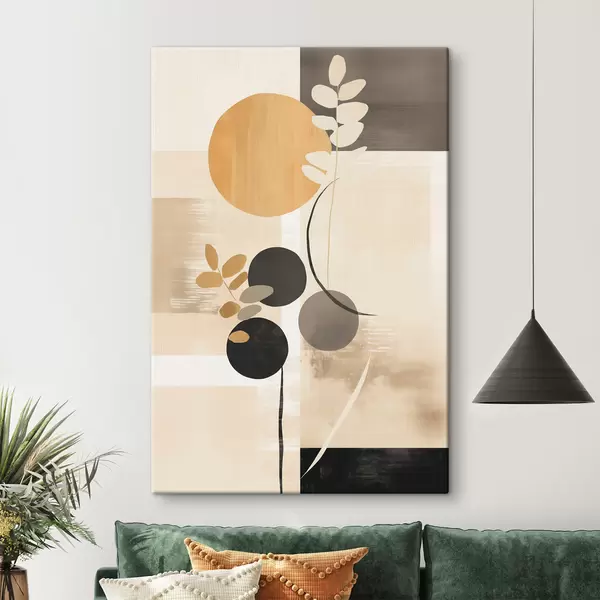 Tableau Une composition abstraite avec des feuilles et des cercles Nr s48612