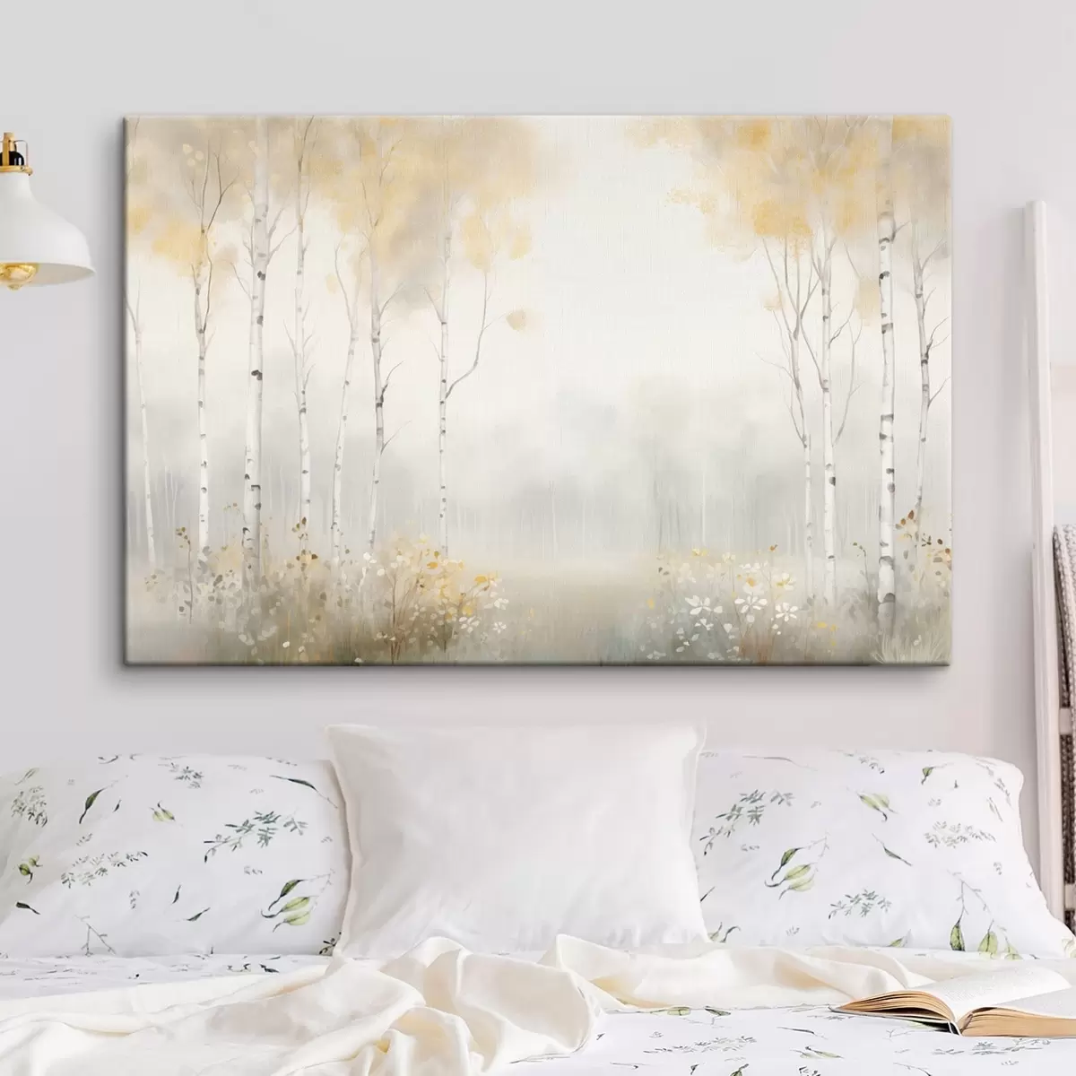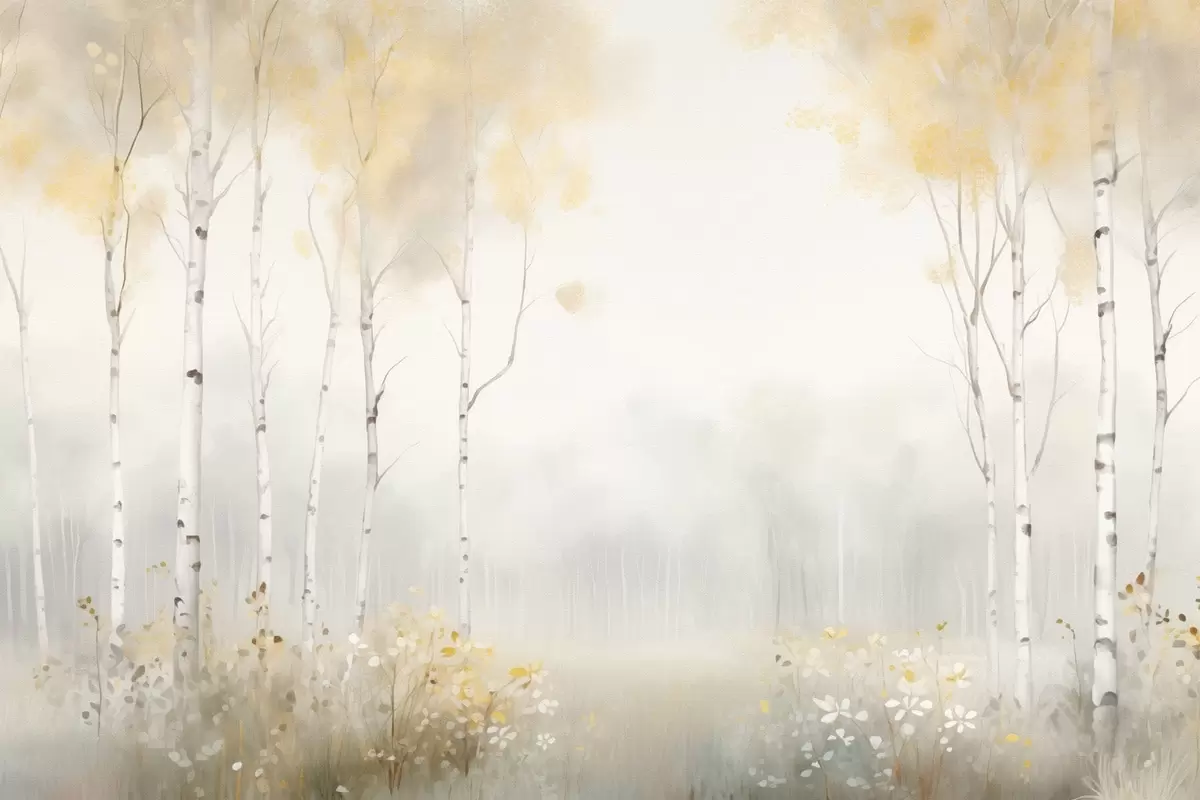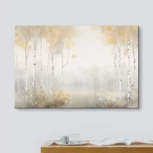 Tableau Une forêt d'arbres élancés dans la brume, dans des tons clairs et doux Nr s48623
