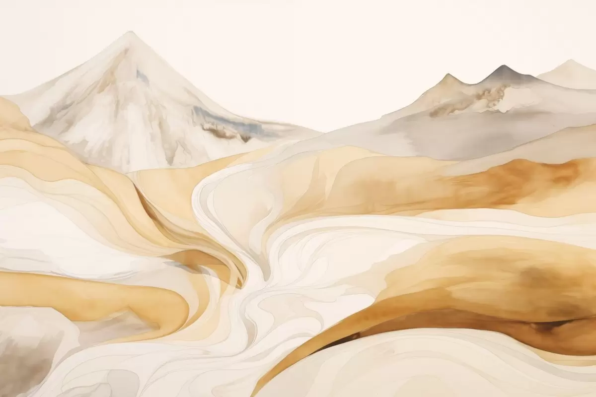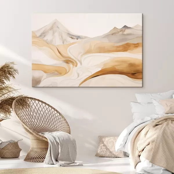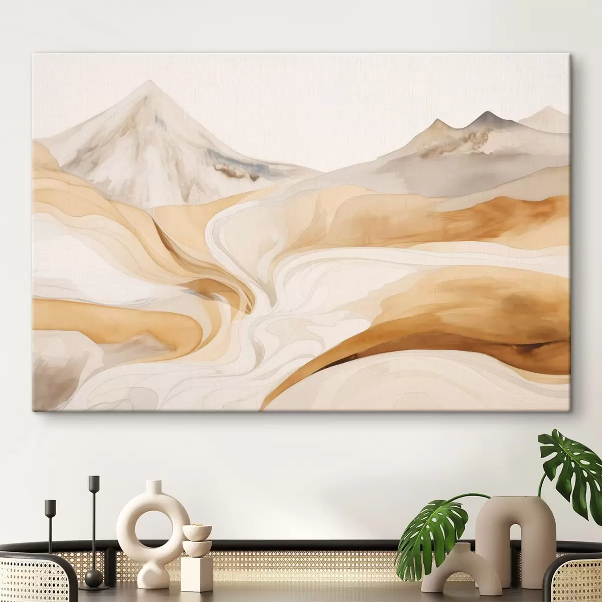 Tableau Paysage stylisé avec des montagnes et des lignes fluides s48626