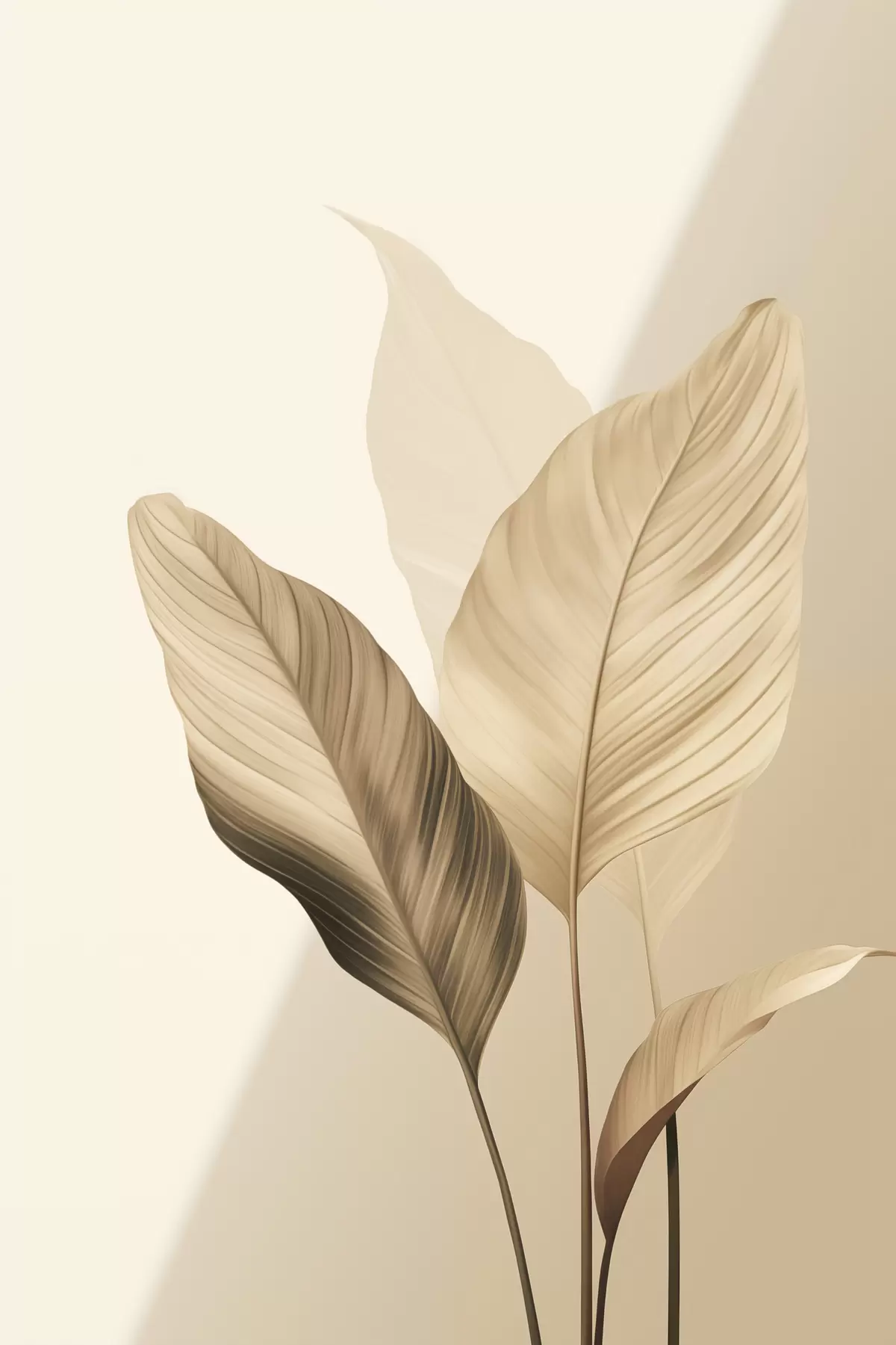Tableau Grandes feuilles tropicales dans des tons de beige et de marron, sur fond clair Nr s48726
