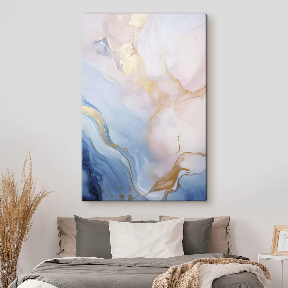 Tableau Œuvre d'art fluide abstraite aux textures variées, avec des motifs tourbillonnants dans des tons roses et bleus Nr s48730