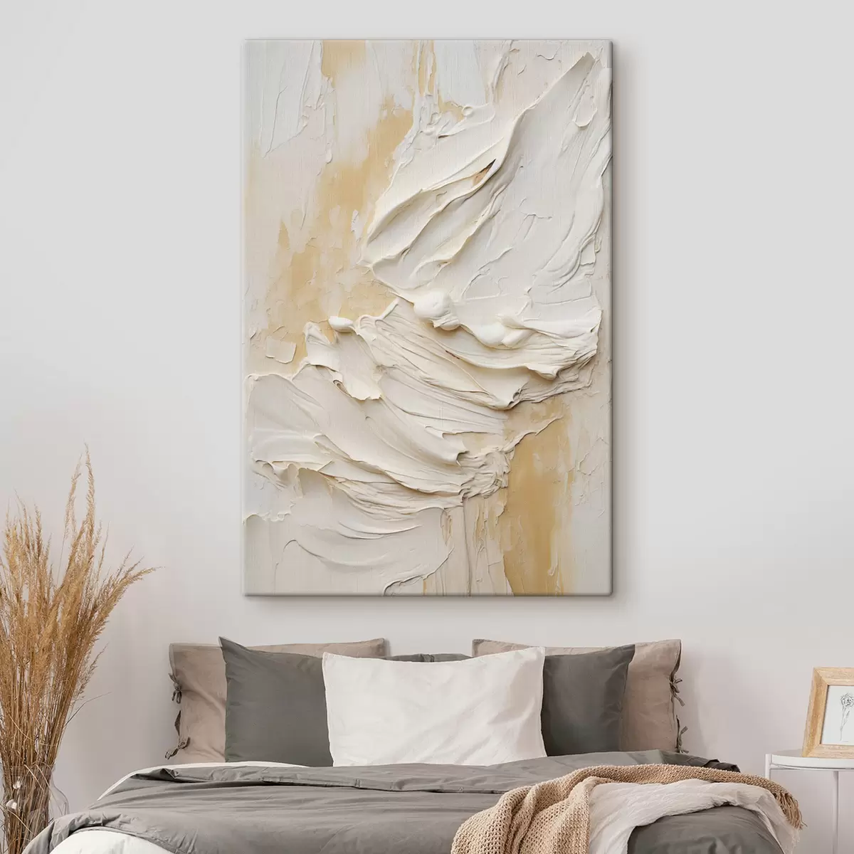 Trois types de matériaux peuvent être commandés : Economic Canvas - matériau dense et durable pour l'impression numérique, identique à la toile de peintre, surface imperméable, reproduction réaliste des détails, matériau à grain moyen. Premium Canvas - la texture ressemble à celle d'une toile de peintre (petits fils entrelacés). Reproduction douce et détaillée de l'image sur une surface mate. Eco-Premium - tissu 100 % coton de haute qualité. Grâce aux fibres naturelles de coton, le matériau est durable et résistant à l'usure. Excellente reproduction des couleurs et des détails.