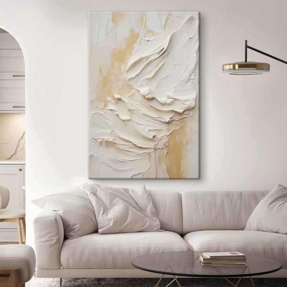 Tableau Peinture texturée dans des tons crème et beige, de style abstrait, art minimaliste Nr s48738