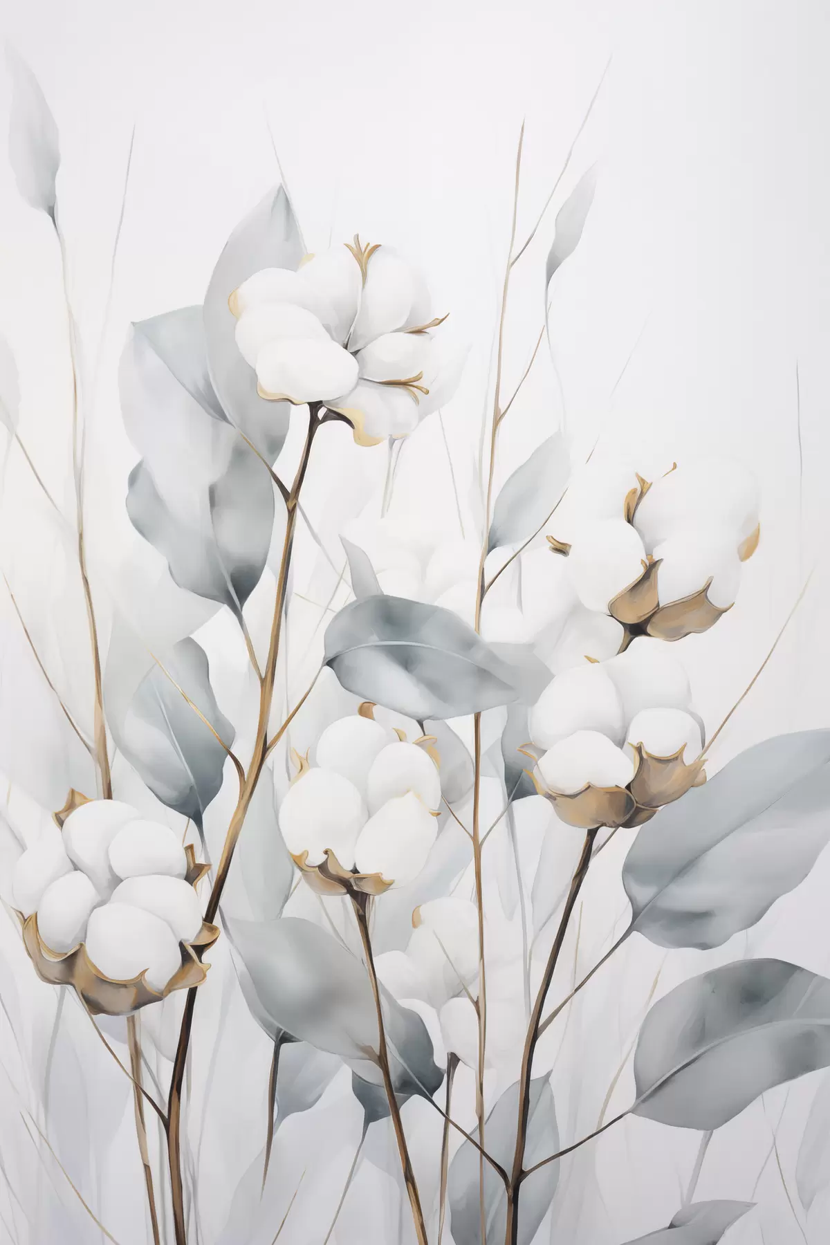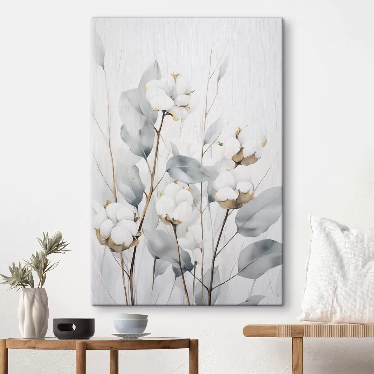 Tableau Un cotonnier blanc aux feuilles bleu-vert pâle sur un fond clair Nr s48743