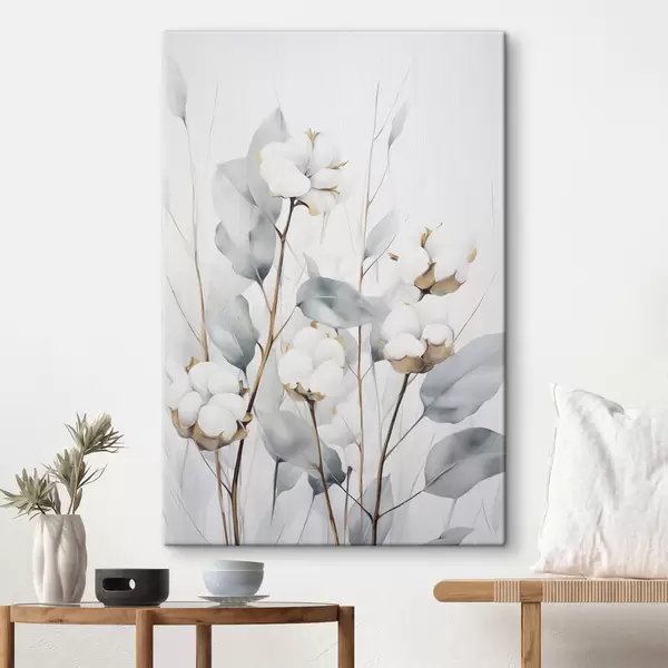 Tableau Un cotonnier blanc aux feuilles bleu-vert pâle sur un fond clair s48743
