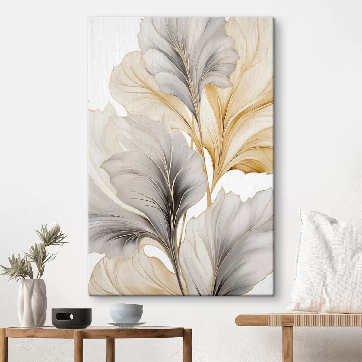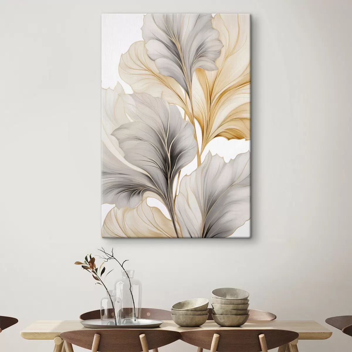 Tableau De grandes feuilles translucides dans des tons de gris et de jaune Nr s48745