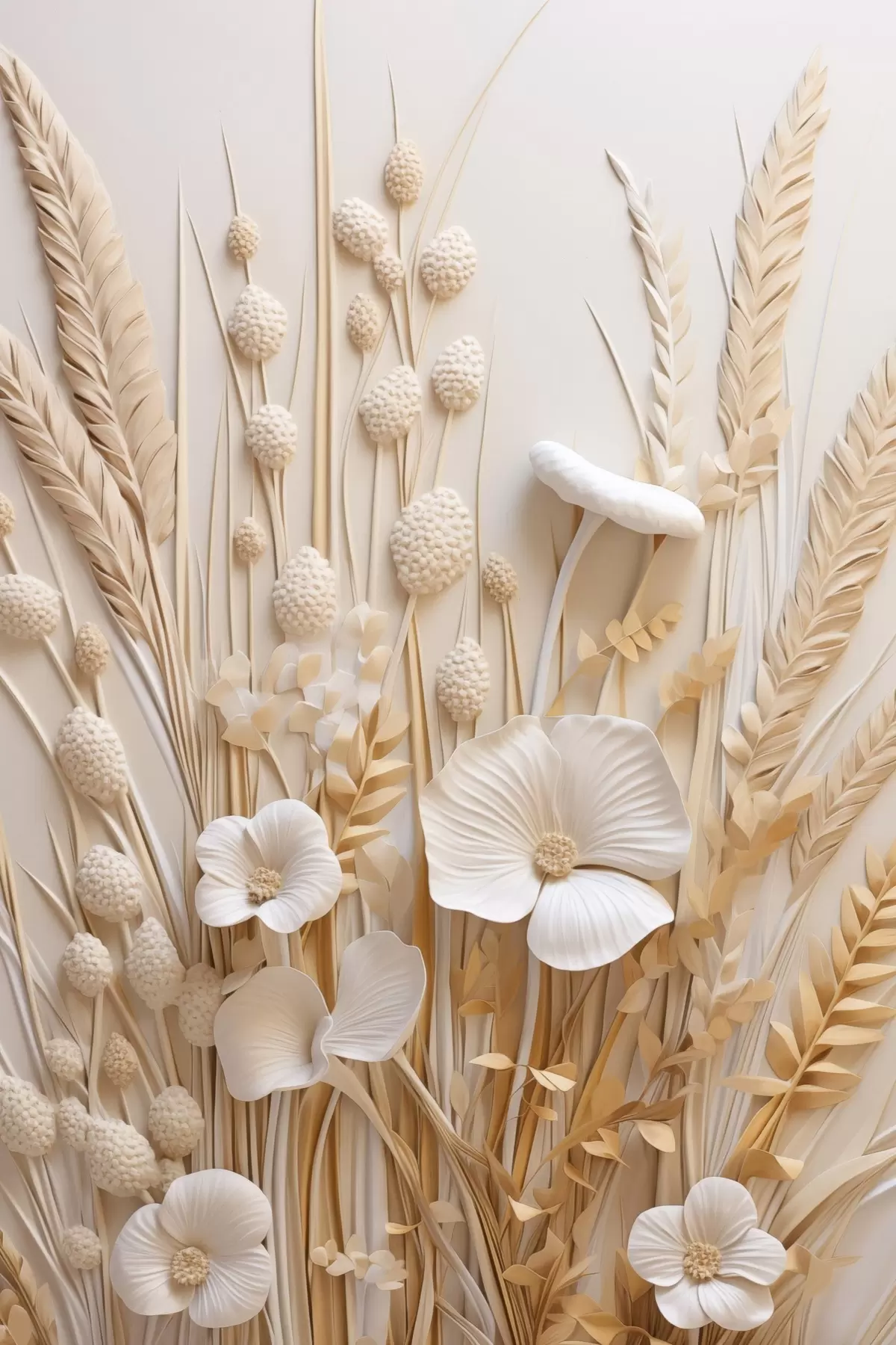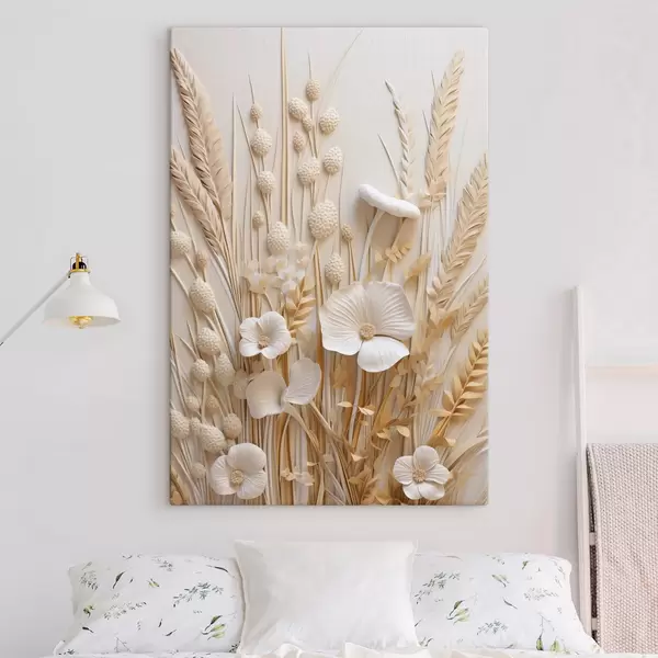 Tableau Un bouquet de coquelicots crème agrémenté de tiges de blé séchées Nr s48748