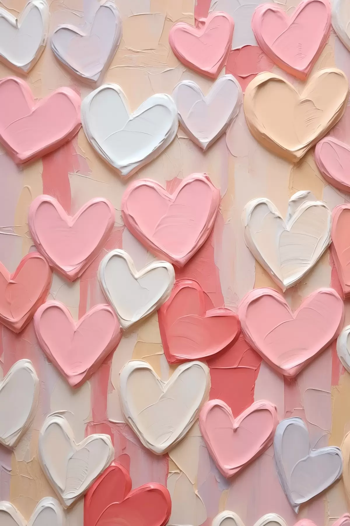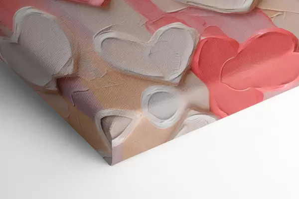 Tableau Des cœurs dans différentes nuances de pêche et de rose, réalisés dans un style texturé et peint s48751