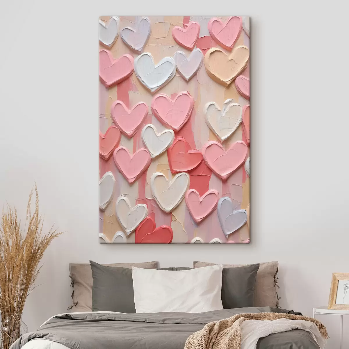 Tableau Des cœurs dans différentes nuances de pêche et de rose, réalisés dans un style texturé et peint Nr s48751
