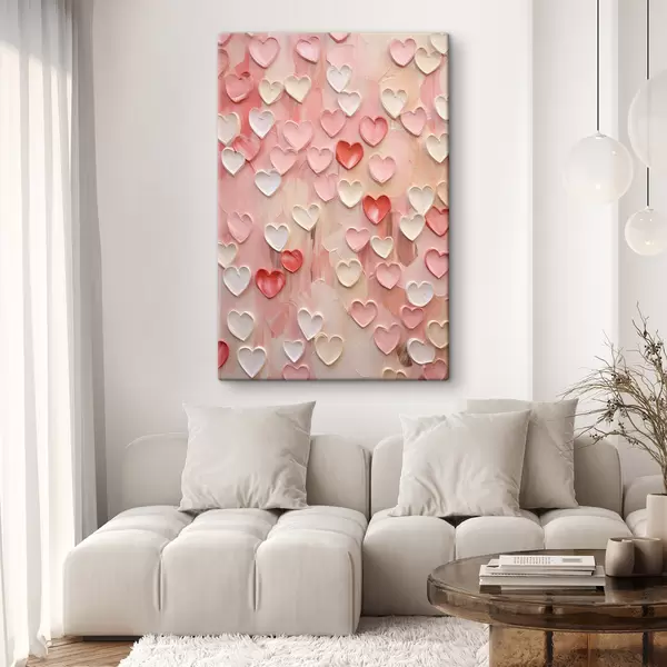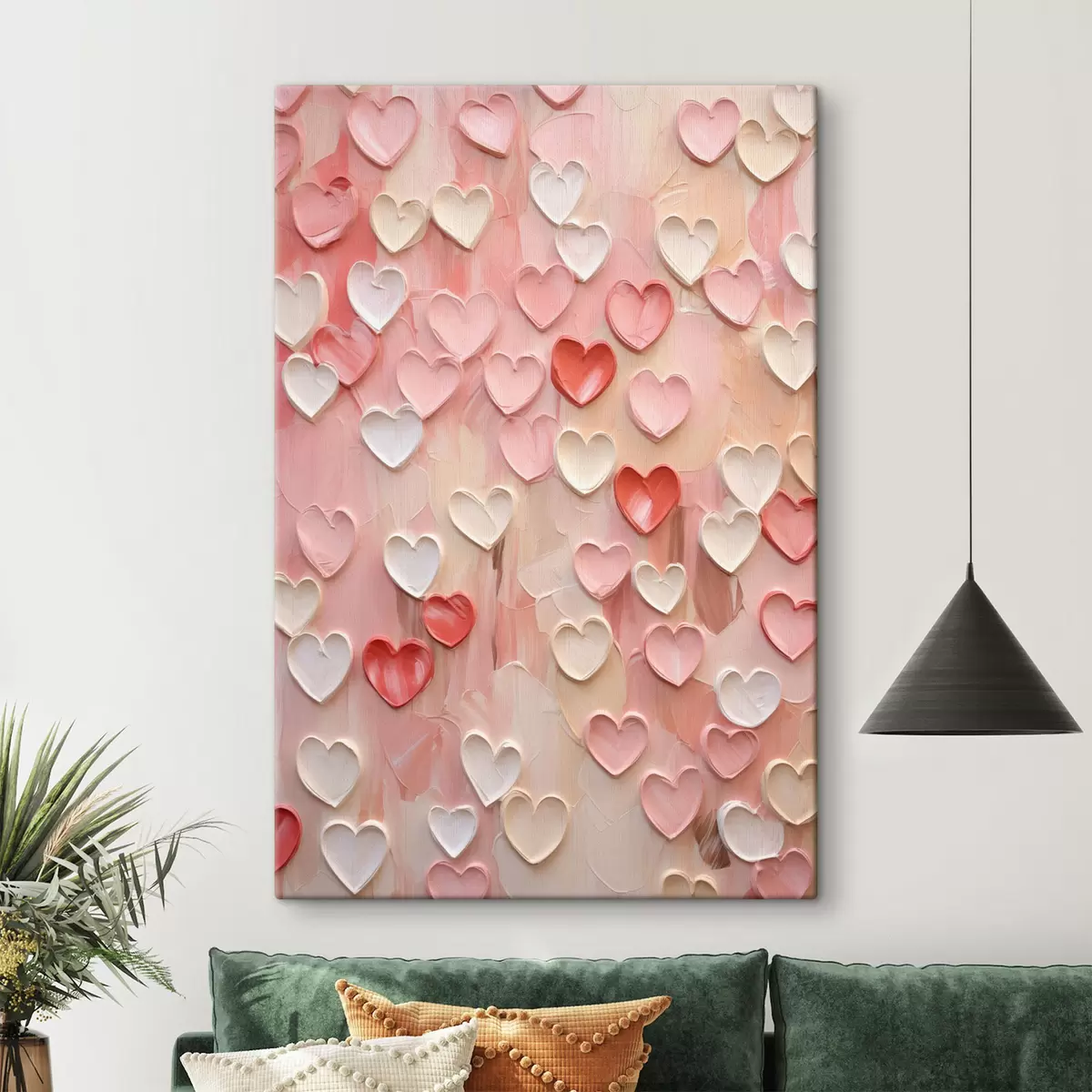 Tableau Des cœurs dans différentes nuances de pêche et de rose, réalisés dans un style texturé et peint Nr s48752