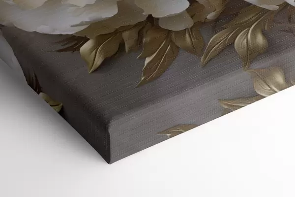 Tableau De grandes pivoines blanches aux feuilles jaunes sur fond gris Nr s48754