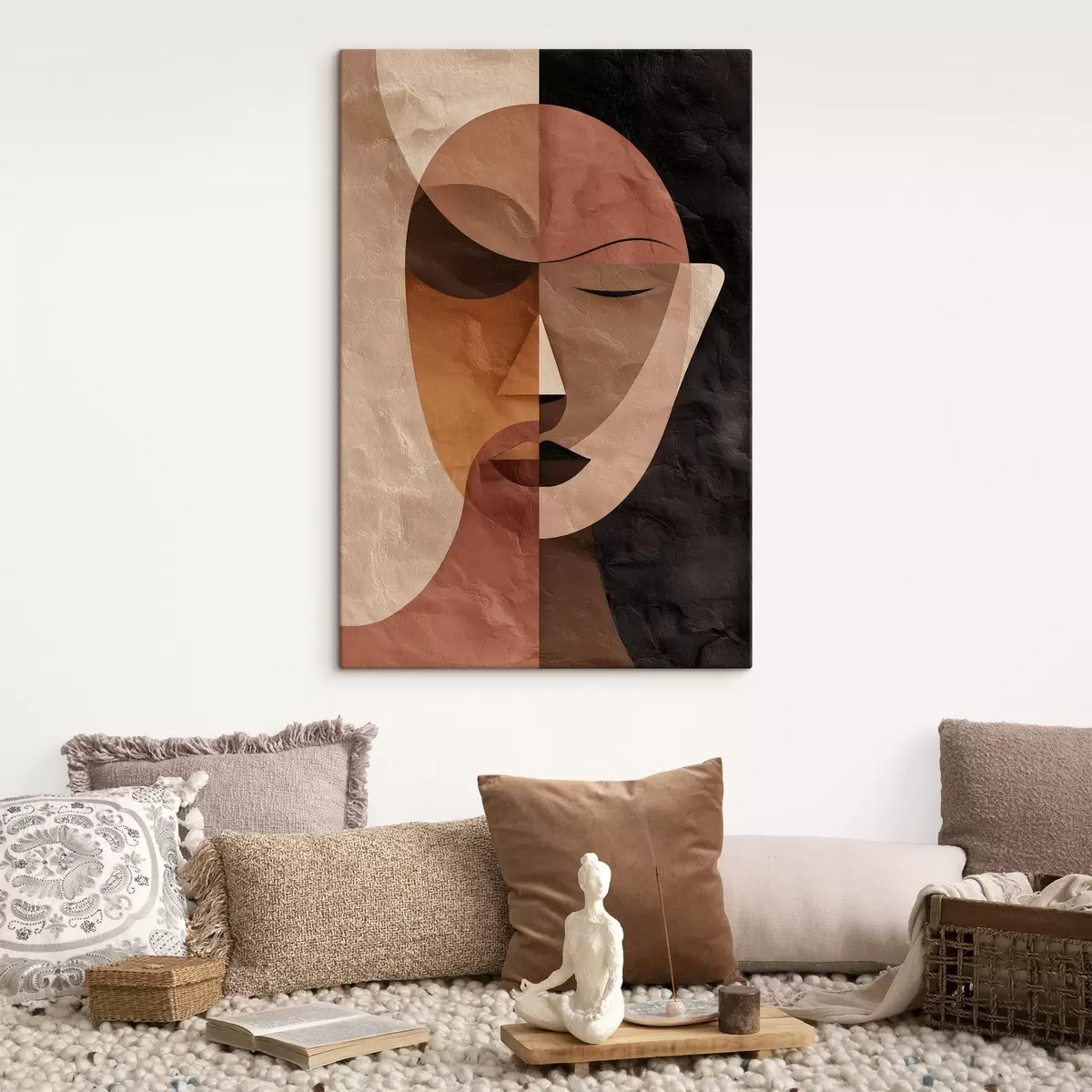 Tableau un visage abstrait aux nuances de café s48777