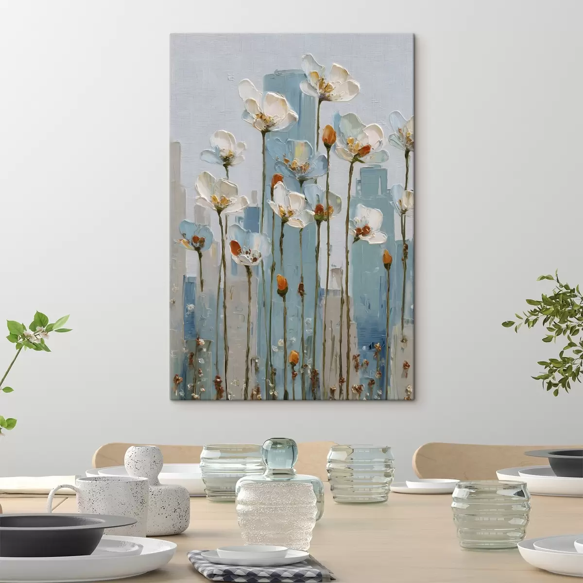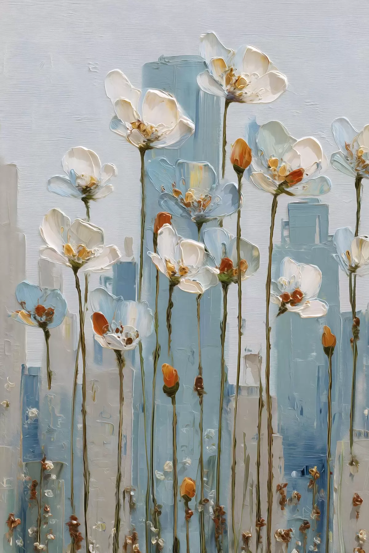Tableau des fleurs sur fond urbain, dans le style de la peinture à l'huile s48785