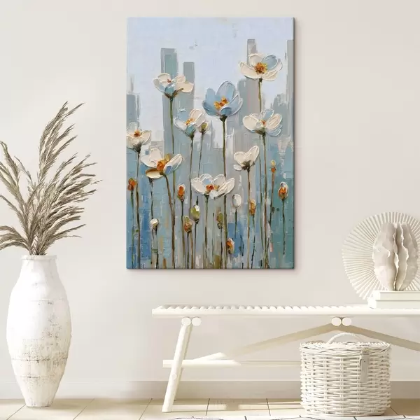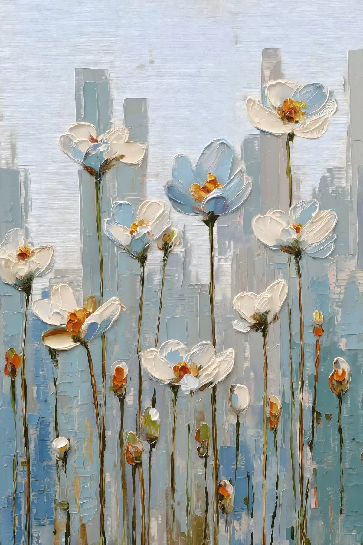 Tableau des fleurs sur fond urbain, dans le style de la peinture à l'huile s48786