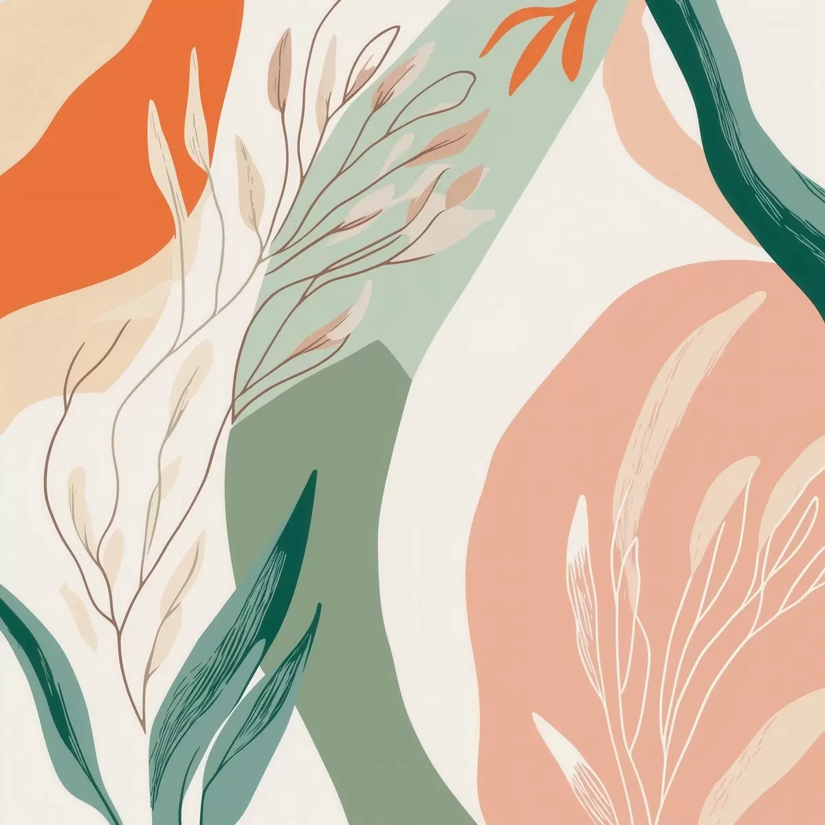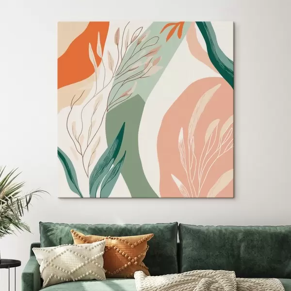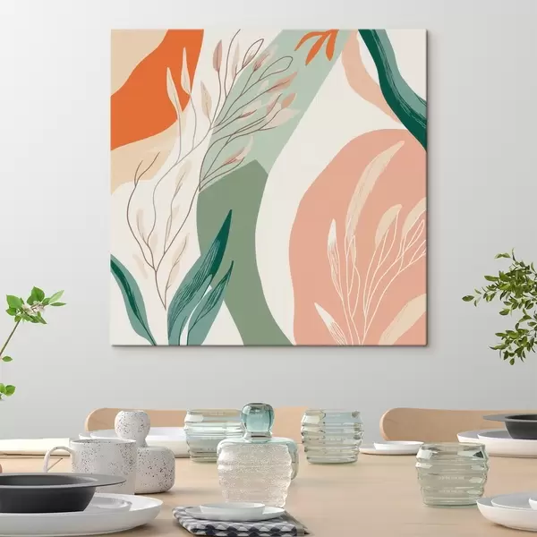 Tableau Art botanique aux formes douces, dans une palette de vert corail Nr s48840
