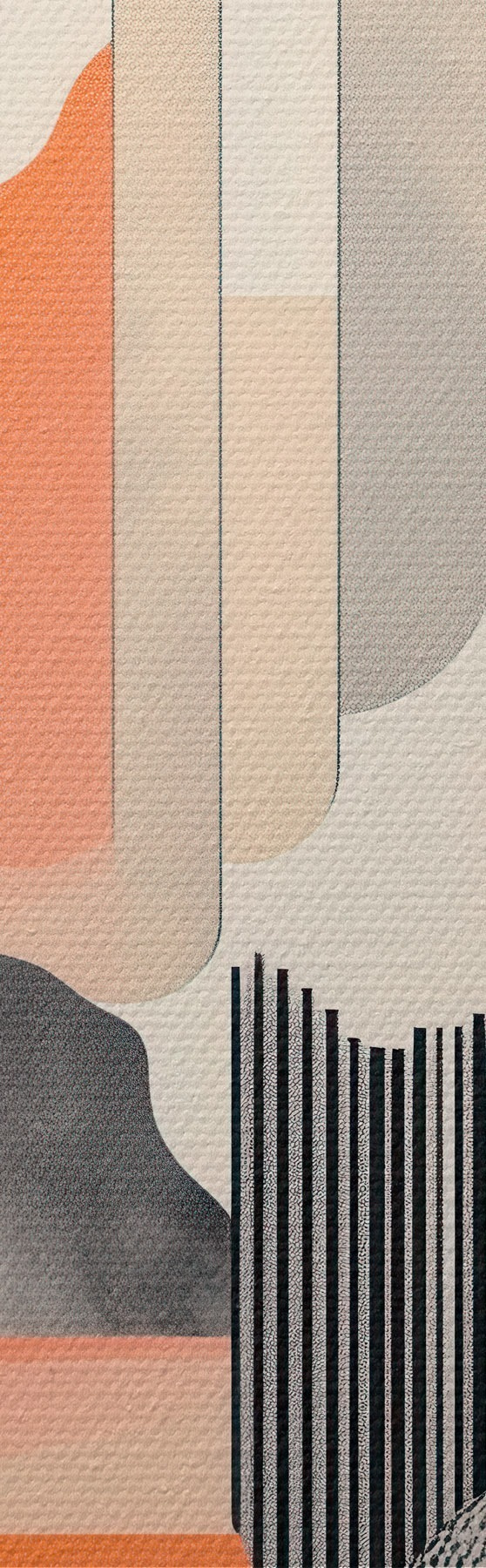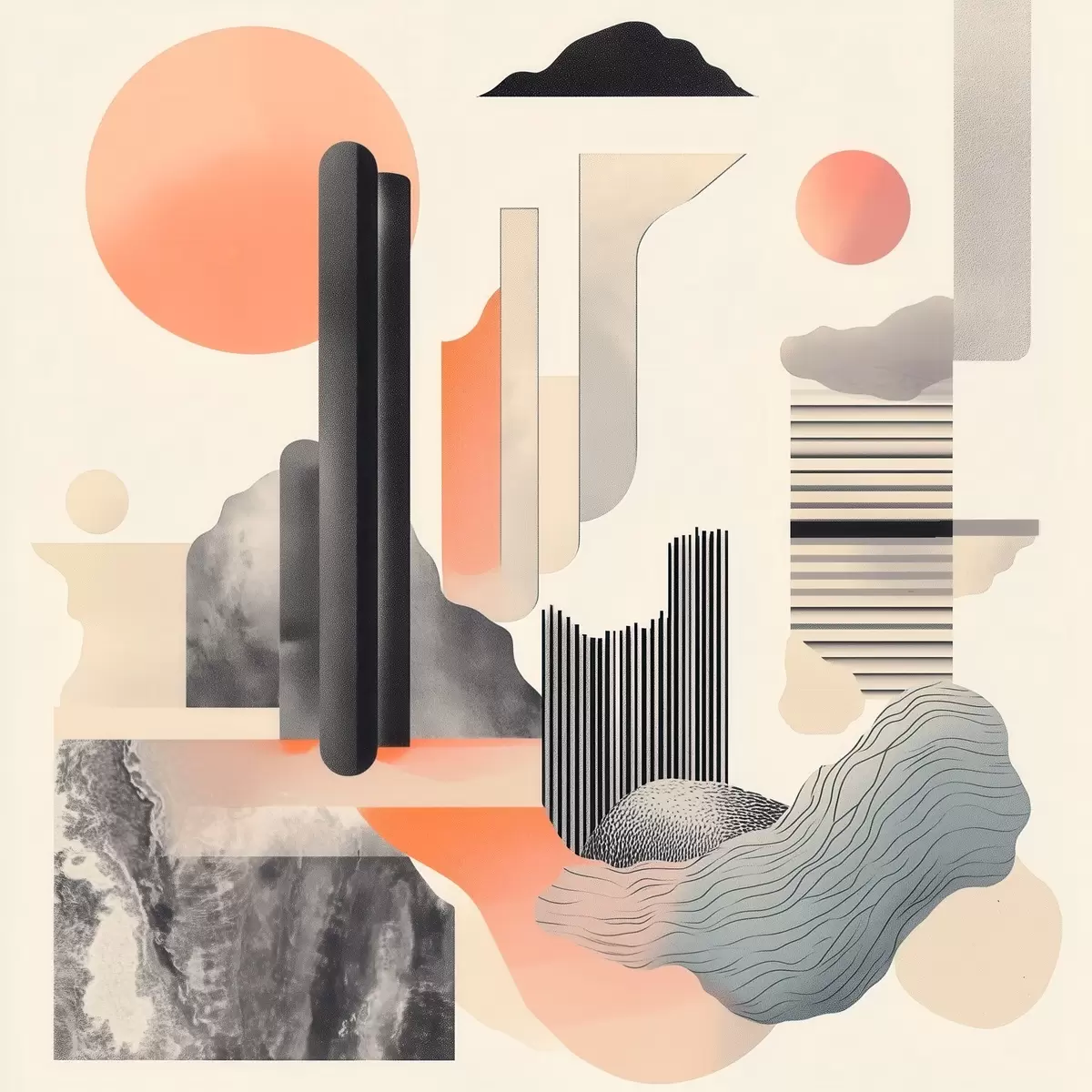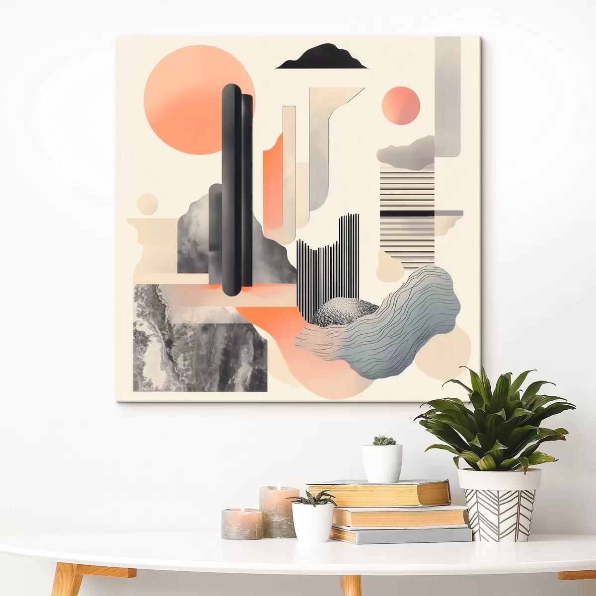 Tableau Composition géométrique dans une palette de tons pêche et gris, dans un style pictural contemporain s48841