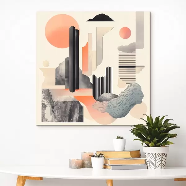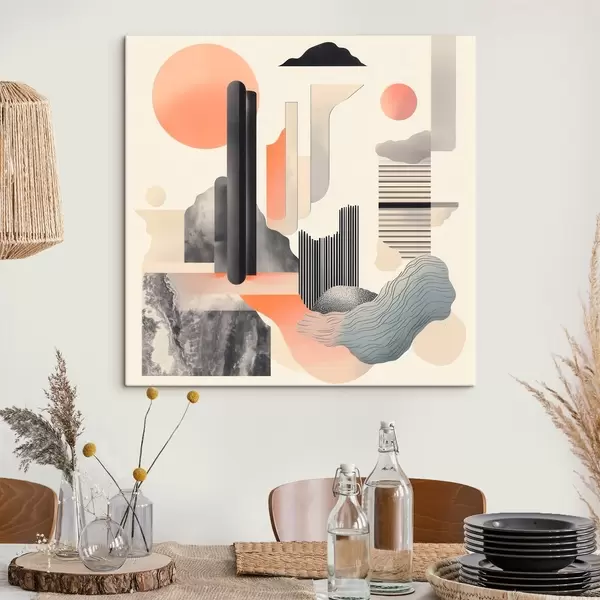Tableau Composition géométrique dans une palette de tons pêche et gris, dans un style pictural contemporain Nr s48841