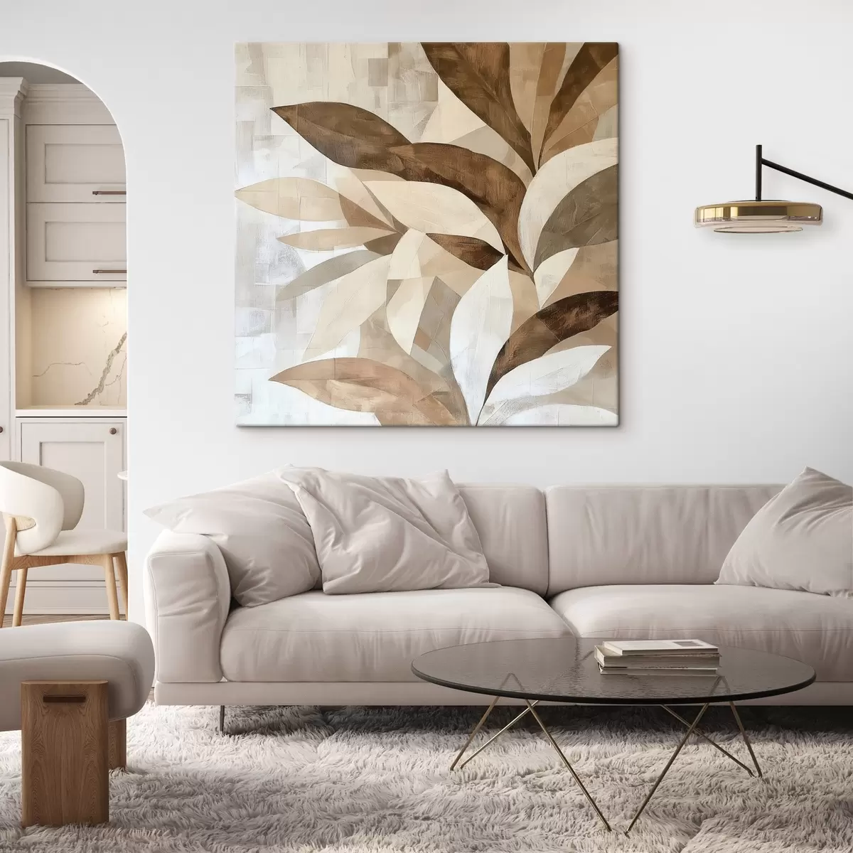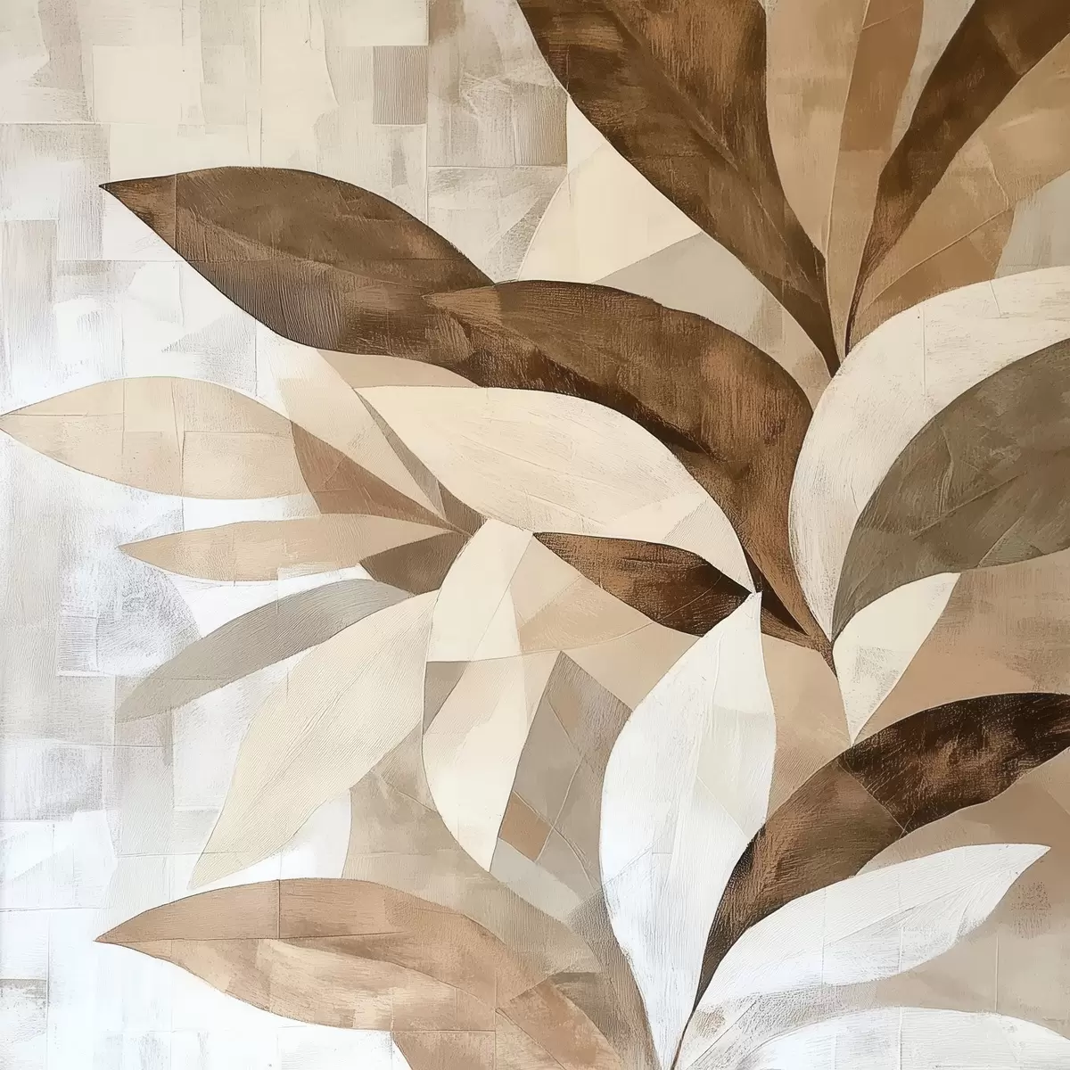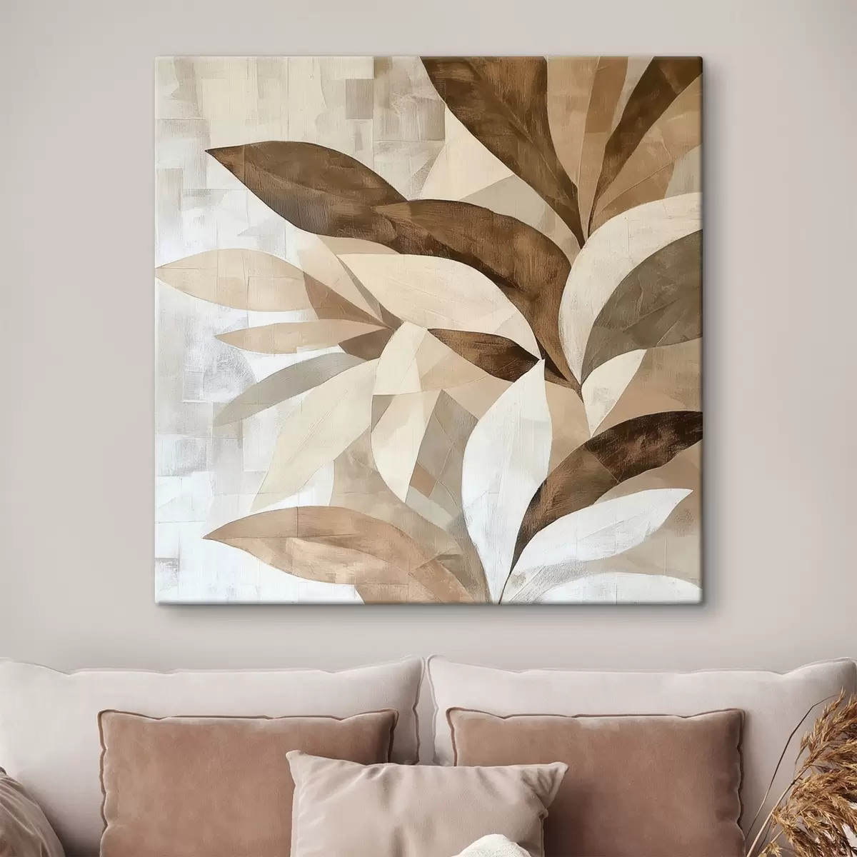 Tableau Composition florale abstraite avec de grandes feuilles dans des tons brun-beige s48848