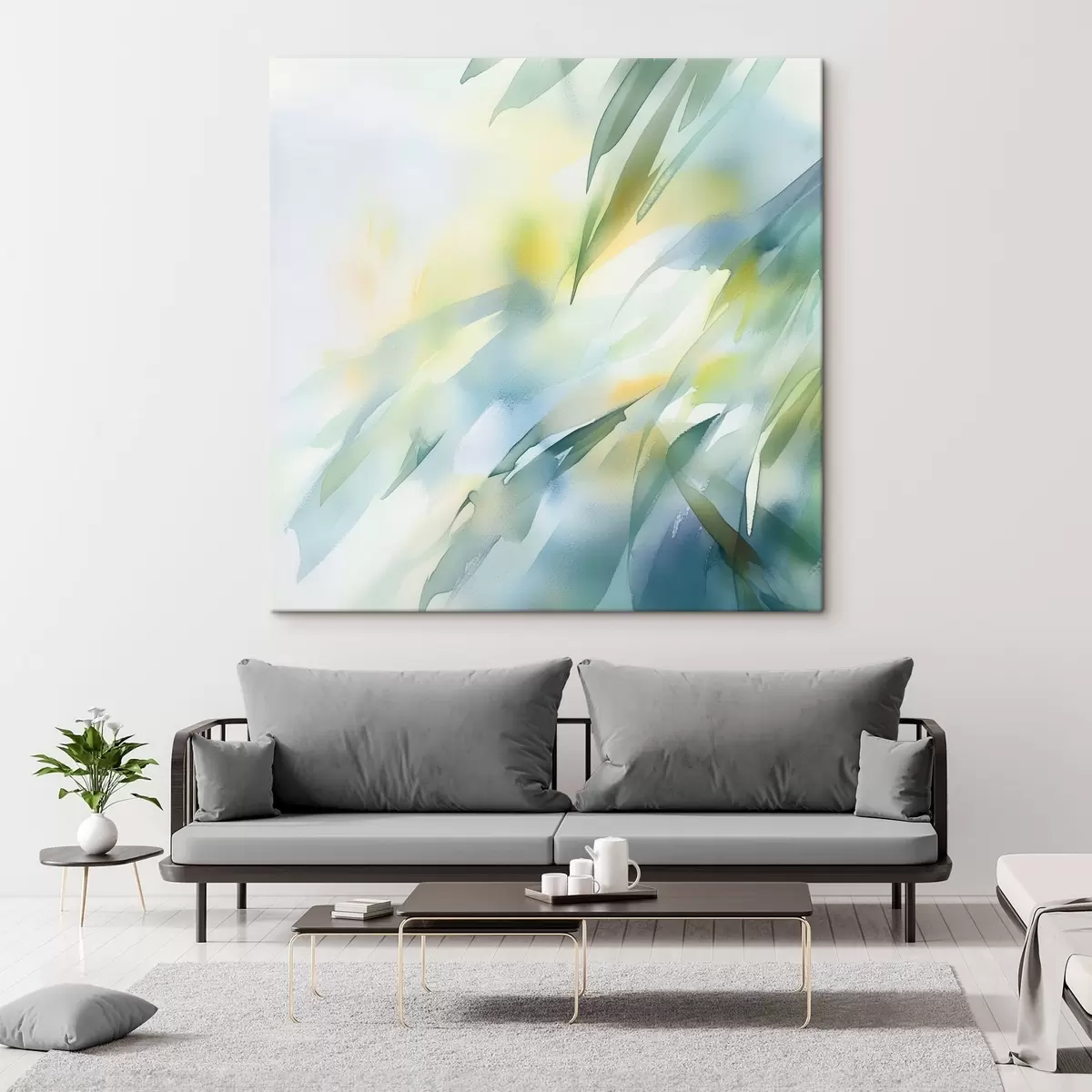 Tableau Des formes naturelles floues et de délicates nuances de turquoise dans un style d'affiche artistique s48850